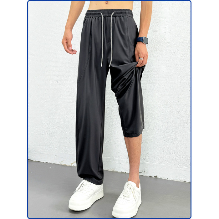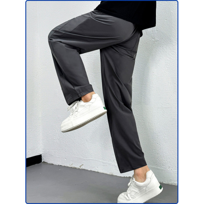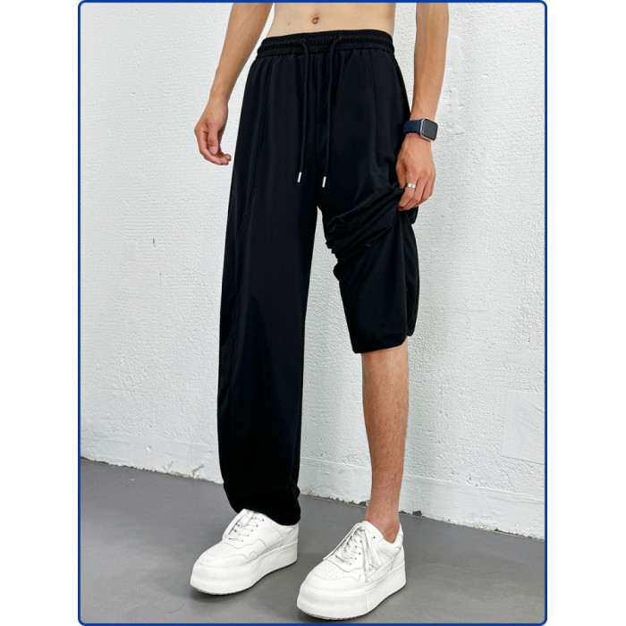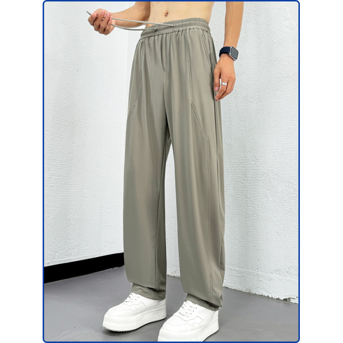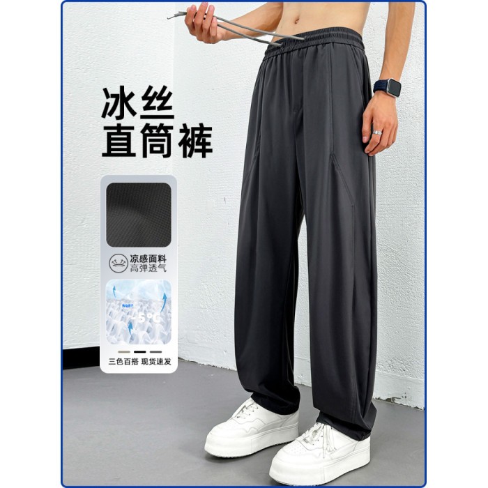 2025春夏新款冰絲休閒褲男士寬松直筒濶腿褲垂感做舊高彈力長褲子