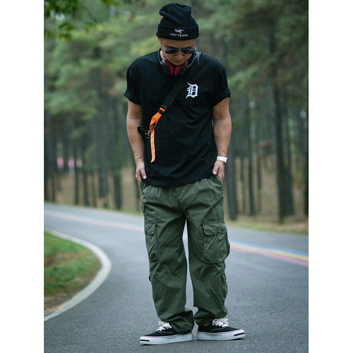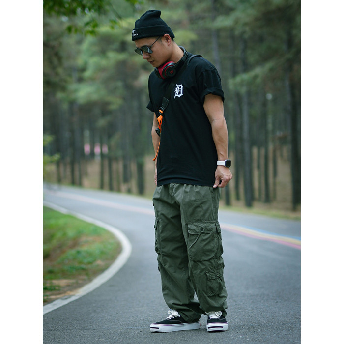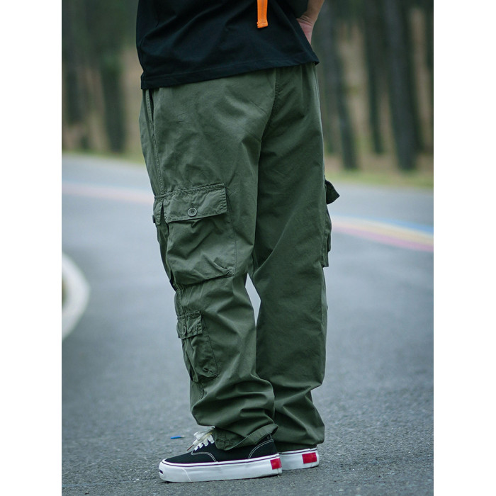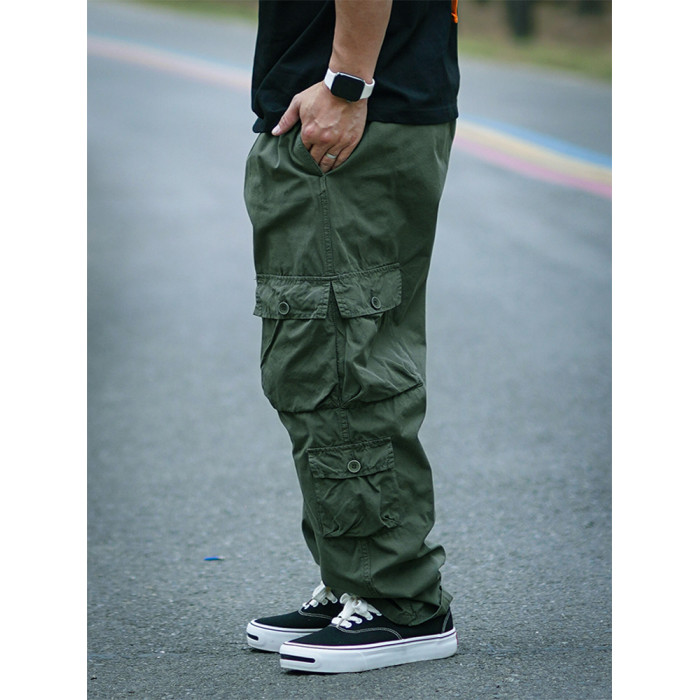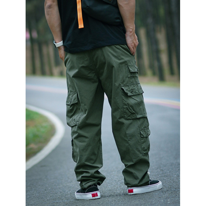春夏薄款繖兵休閒工裝褲男寬松直筒日系多口袋復古百搭大碼濶腿褲
