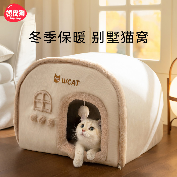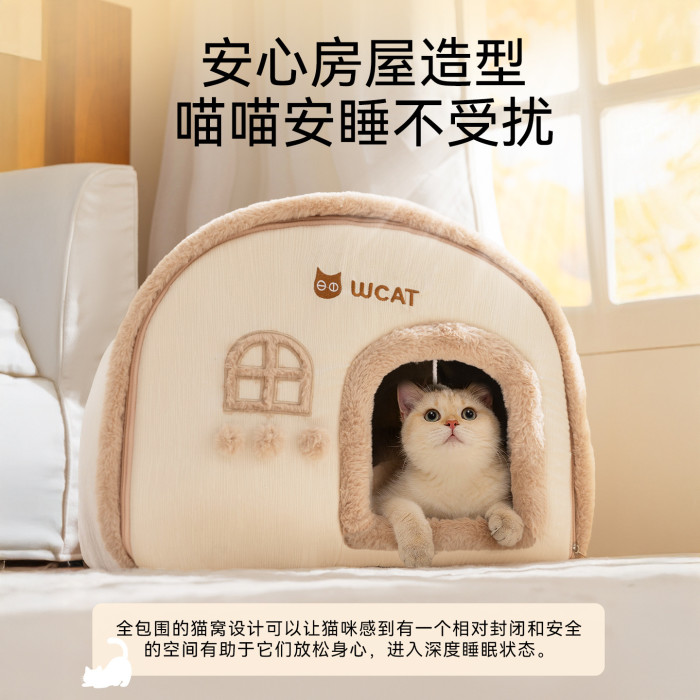 25年新款秋冬季封閉式睡覺貓睡袋加厚保暖狗窩大空間貓屋別墅貓窩