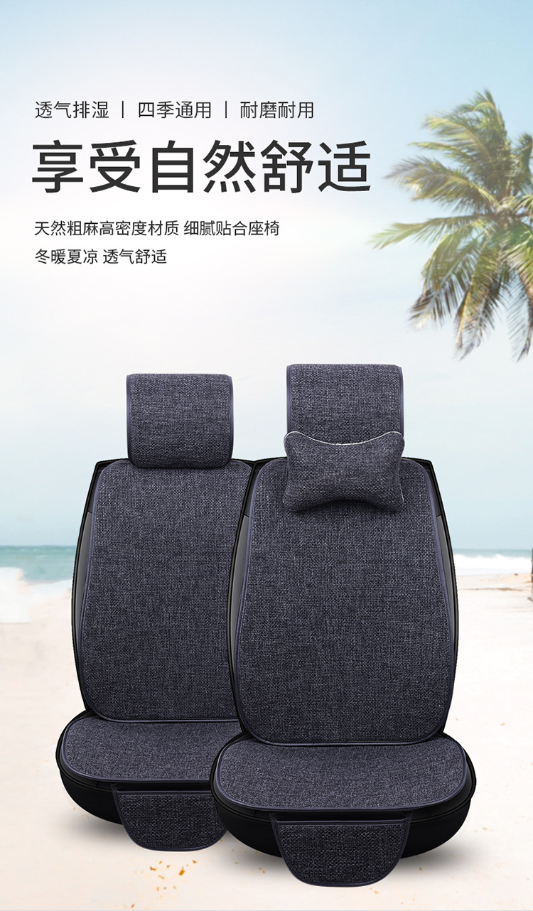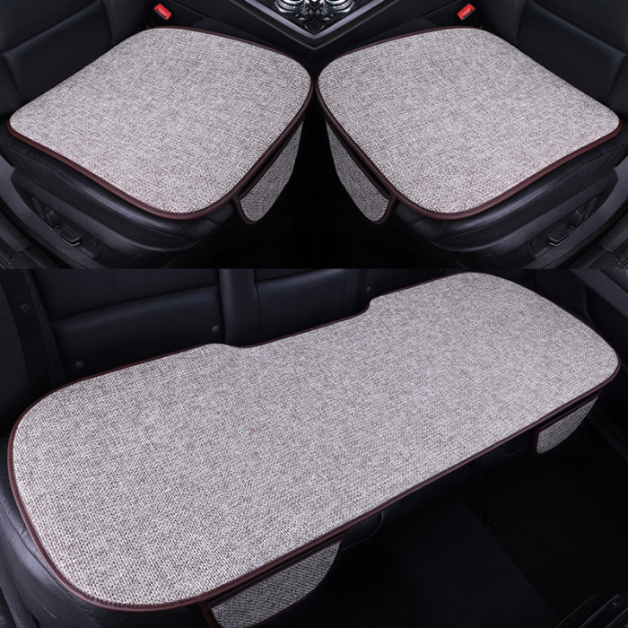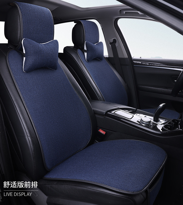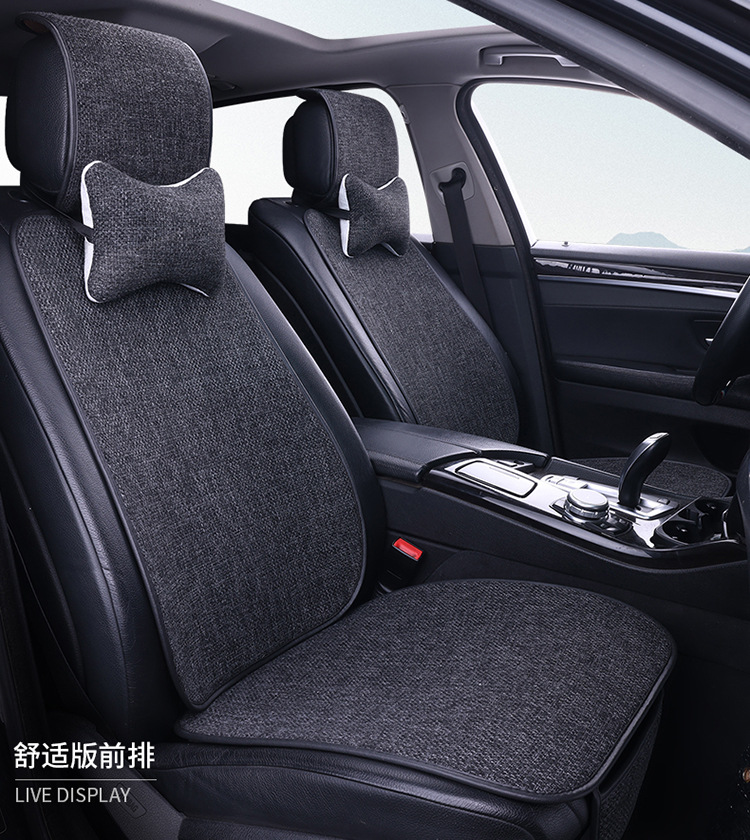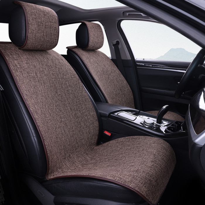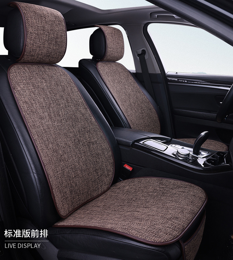 汽車坐墊夏季涼墊通用亞麻汽車座套冰絲單片單座三件套整車坐