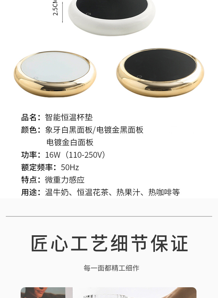 【三檔調溫】純白色恒溫盃墊