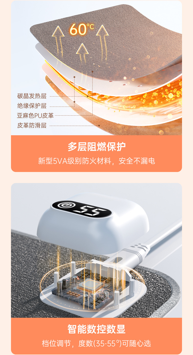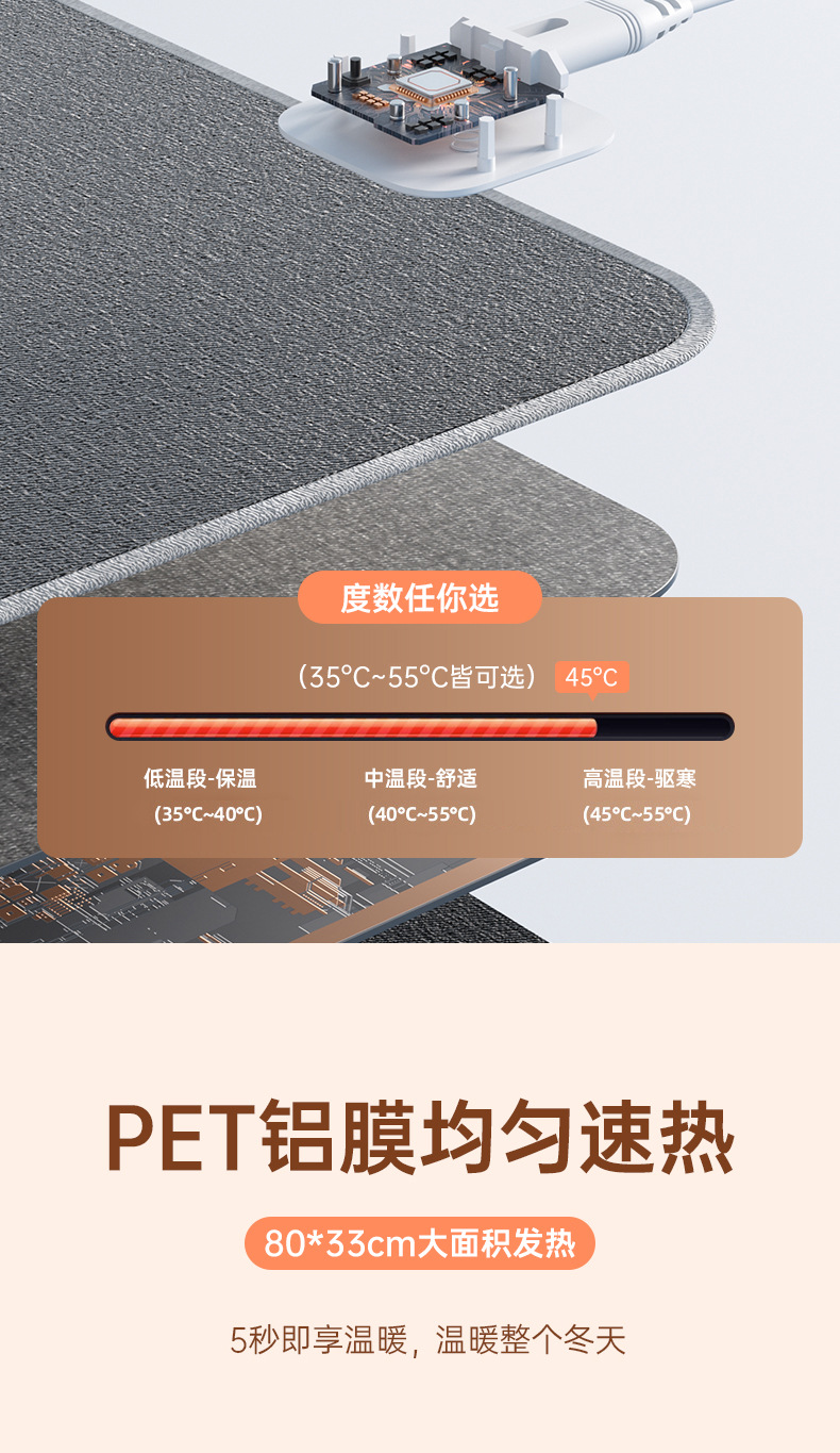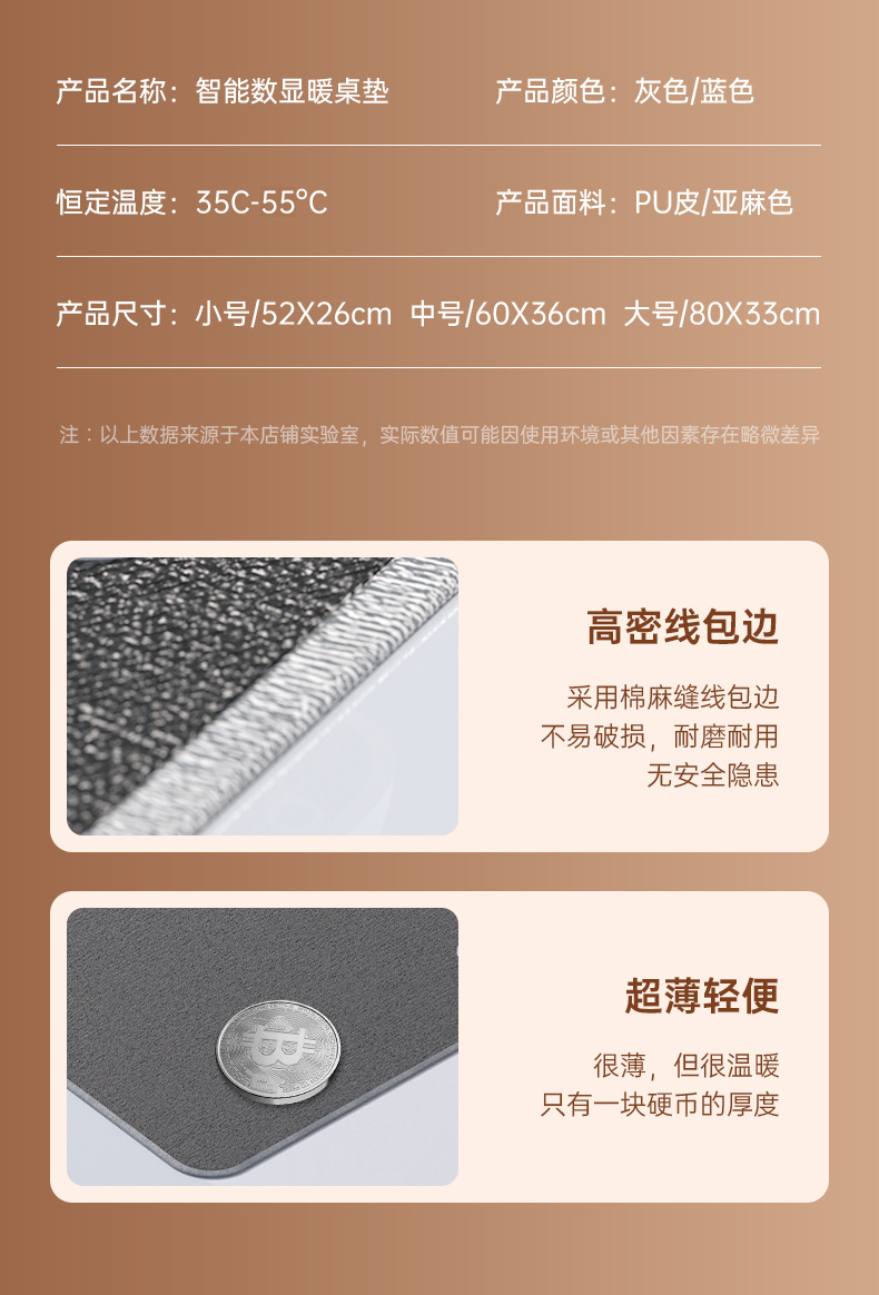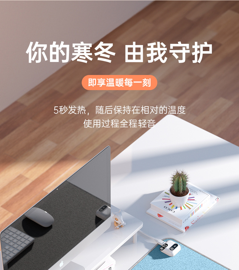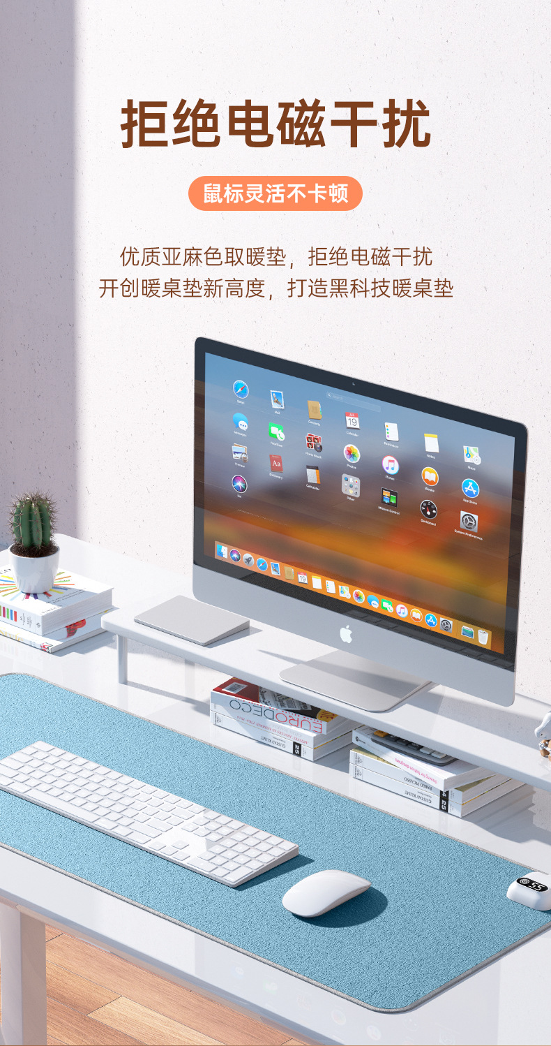 加熱滑鼠墊大號數顯亞麻髮熱暖桌墊辦公室電腦桌面髮熱墊