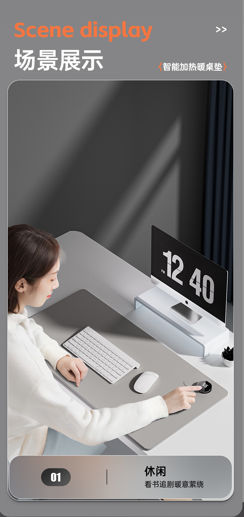 有機矽加熱滑鼠墊辦公室電腦桌面加熱桌墊學習寫字暖手墊
