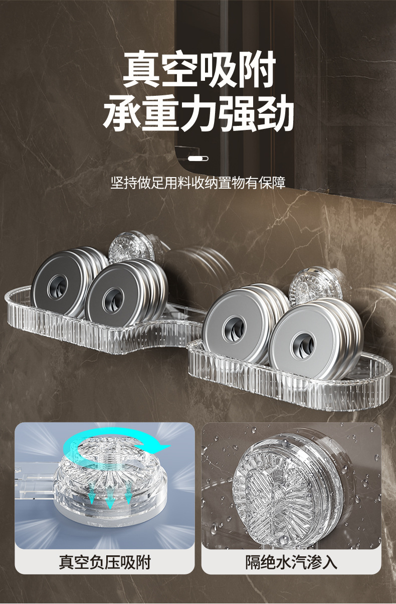 【透明黑】吸磐置物架(可拆卸)單個裝