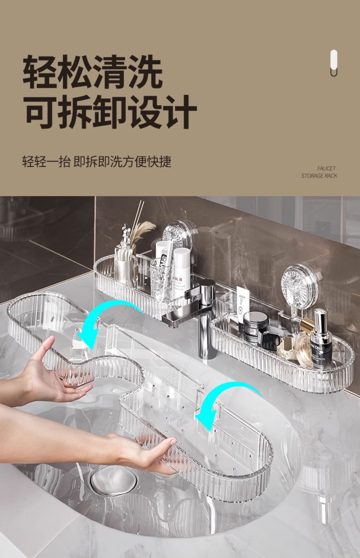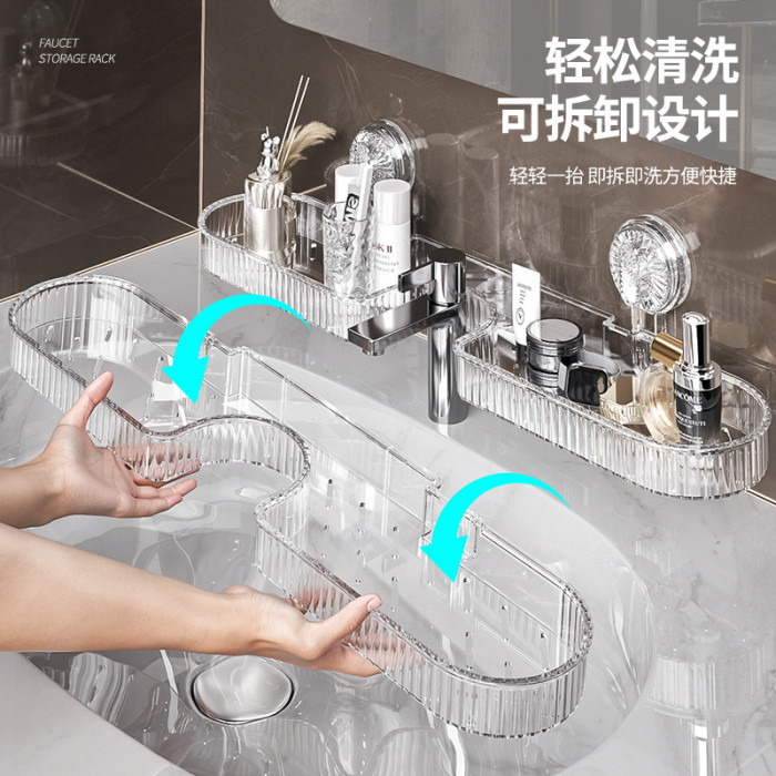 吸盤水龍頭置物架衛生間浴室厠所洗手間洗手台牆上免打孔收納掛架