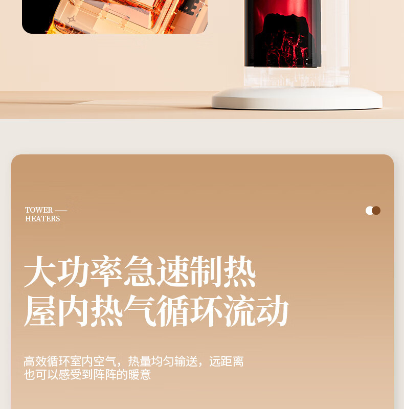 先科(SAST)取暖器遙控壁爐塔式立式電暖器速熱電熱暖風機搖頭
