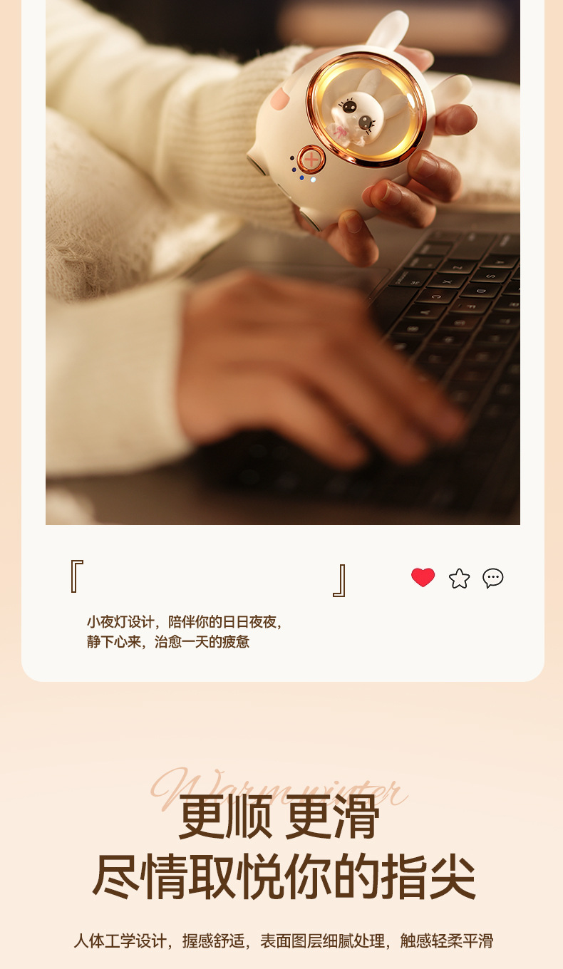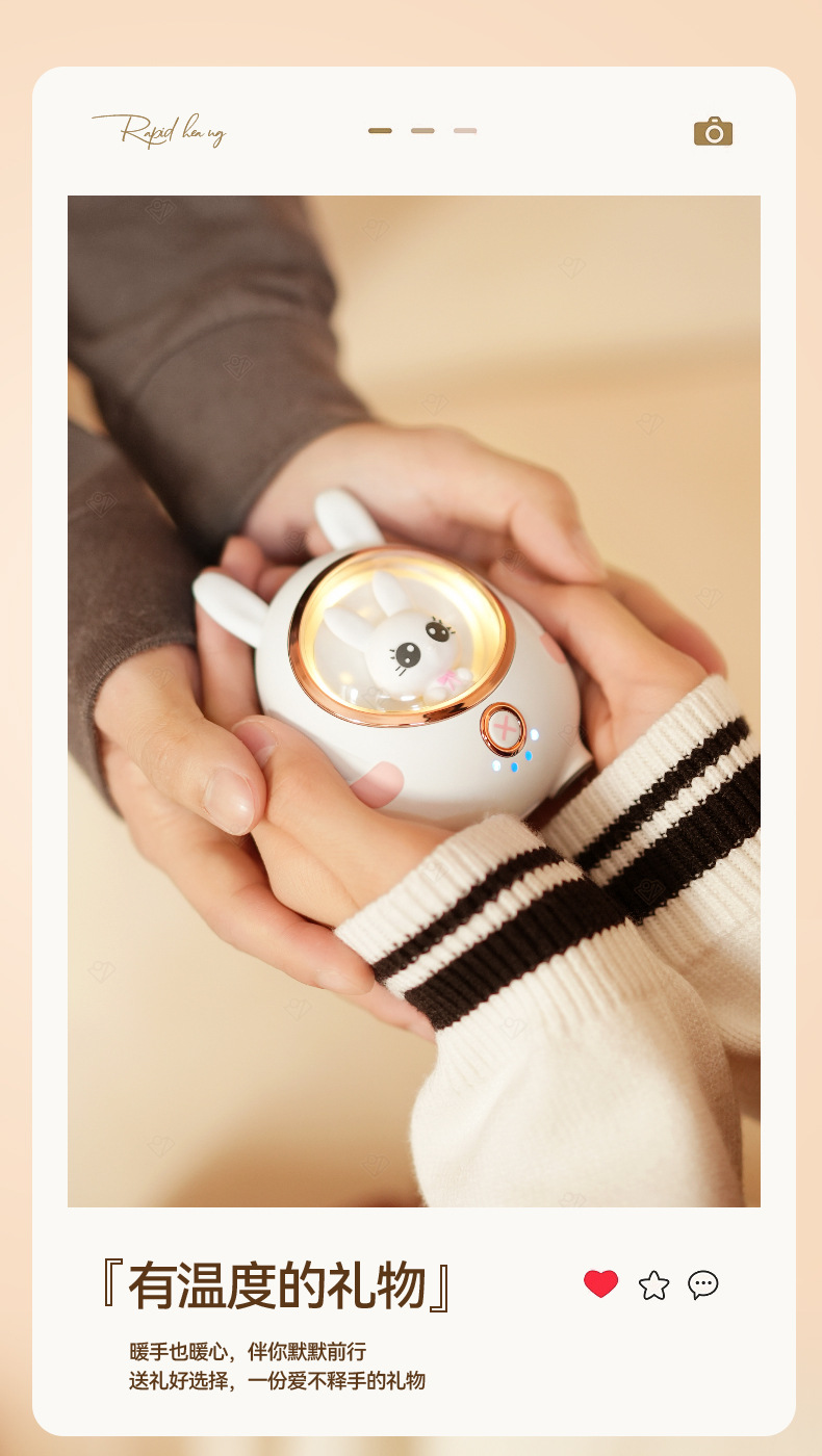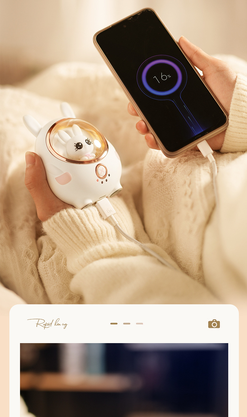 新款小白兔暖手寶充電寶可愛萌寵USB可攜式迷你暖寶寶冬季禮品