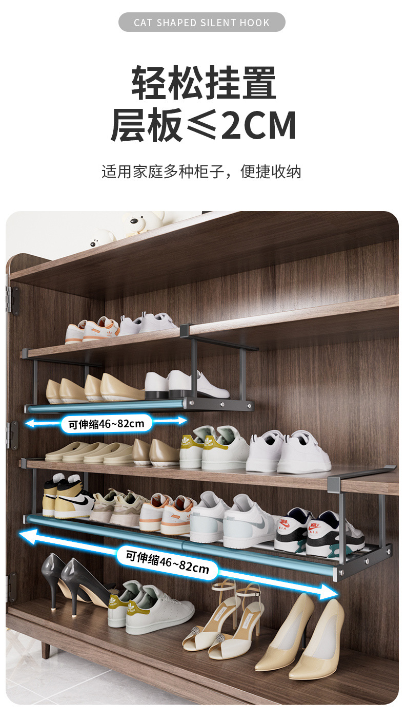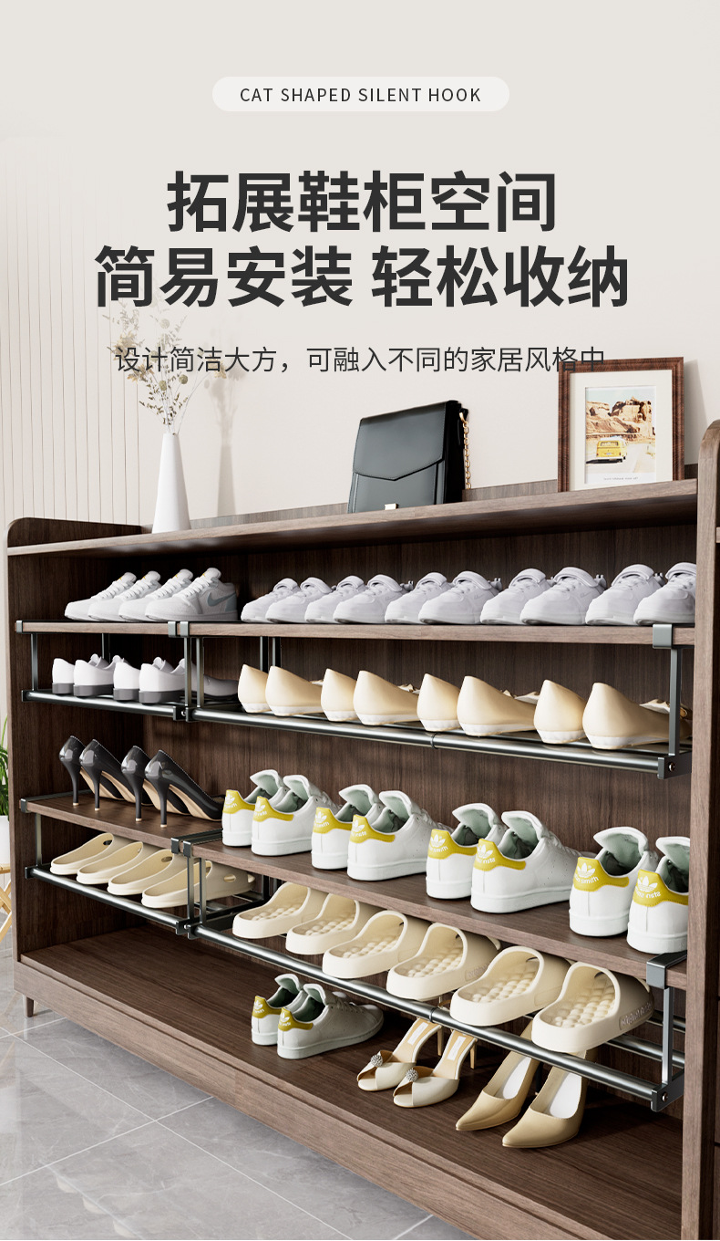 可伸縮鞋子收納神器鞋櫃分層隔板家用鞋架省空間下掛式鞋托置物架