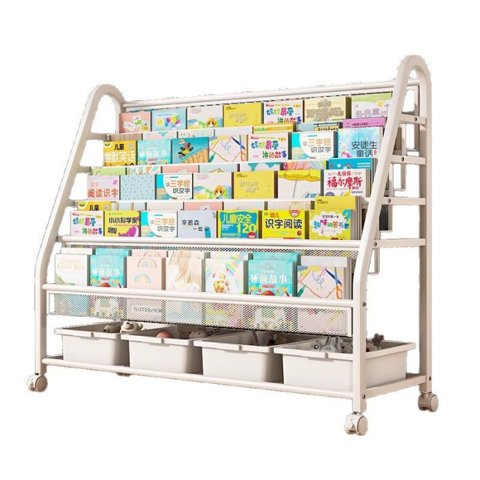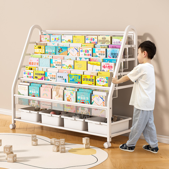 兒童書架落地置物架家用閲讀區繪本架多層玩具收納架簡易寶寶書櫃
