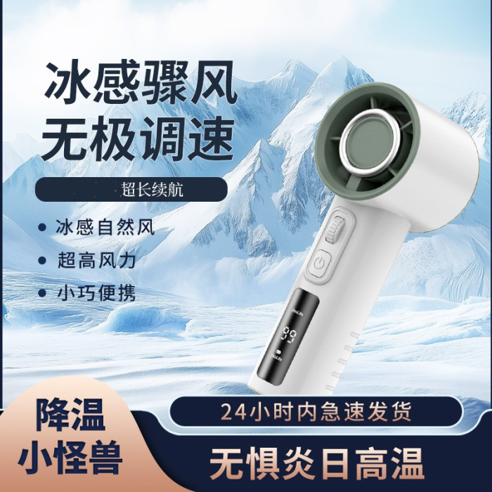 2025冰敷手持風扇辦公戶外可攜式usb數顯製冷高速暴力渦輪小風扇