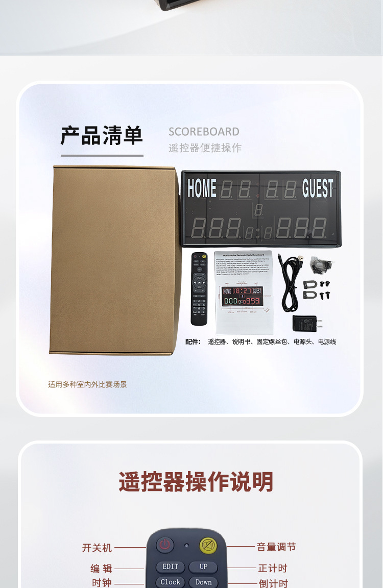 美規籃球台球比賽電子記分器正倒計時時間場次計分器記分牌足