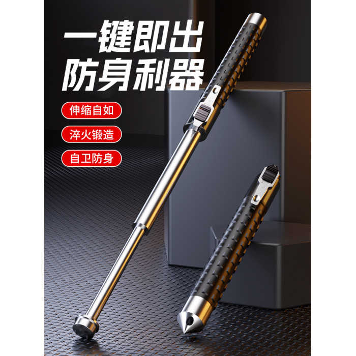 自動彈簧甩棍合法車用破窗防身器甩棒實心三節棍伸縮棍狗打棒自衛