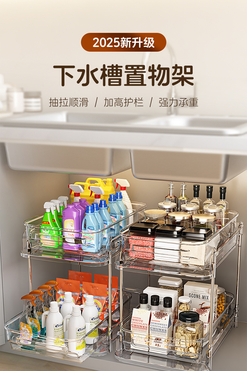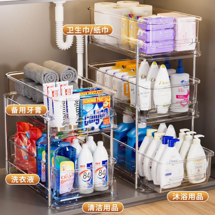 洗漱台下水槽置物架抽拉式多層儲物架子衛生間浴室櫥櫃分層收納架
