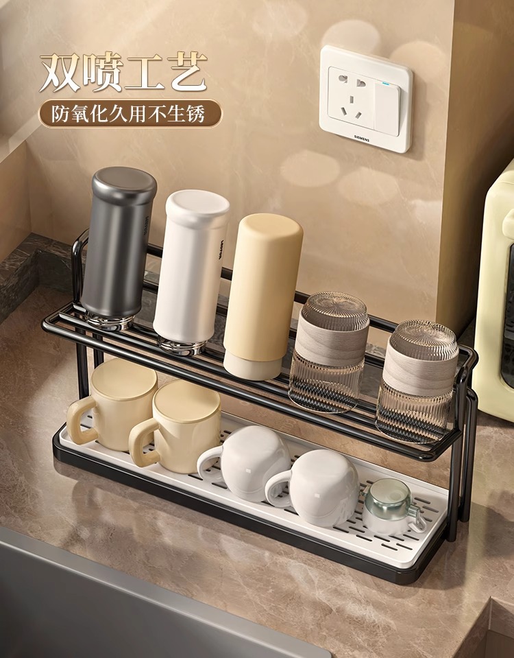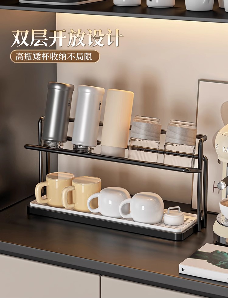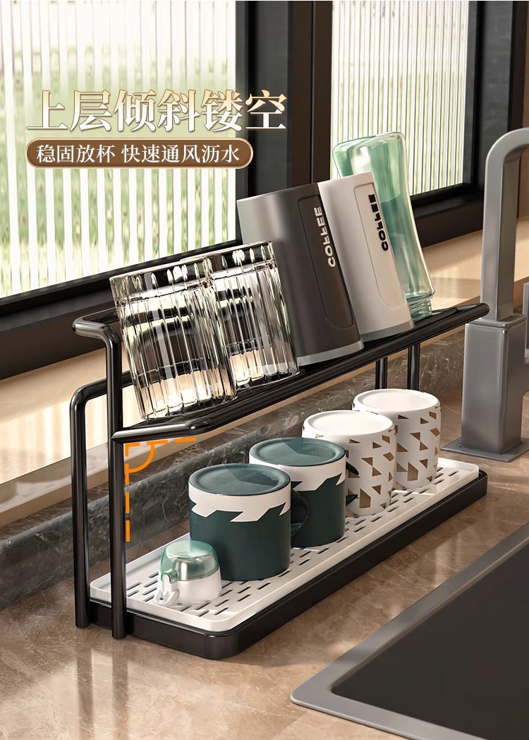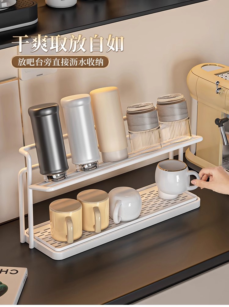 雙層杯架鐵藝瀝水托盤架台面玻璃杯子茶杯咖啡水杯多層收納置物架
