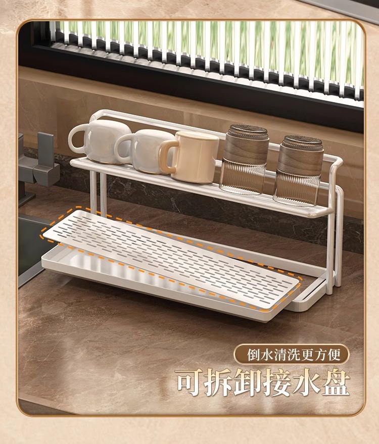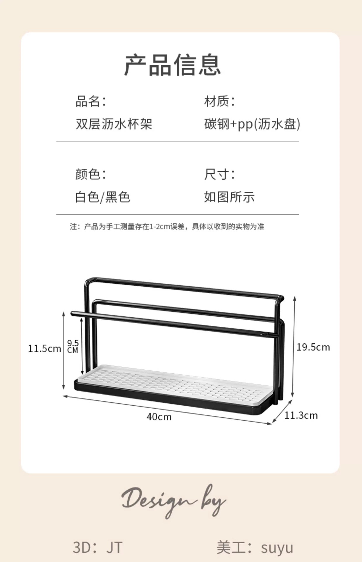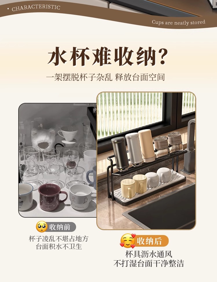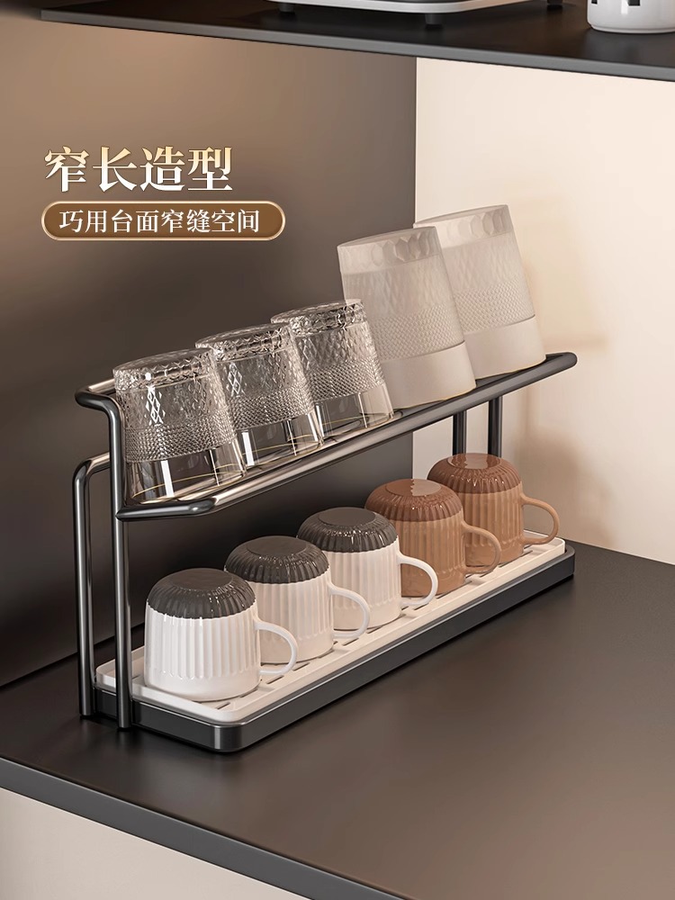 雙層杯架鐵藝瀝水托盤架台面玻璃杯子茶杯咖啡水杯多層收納置物架