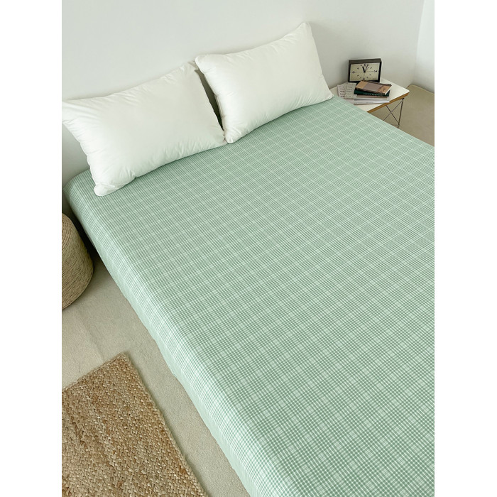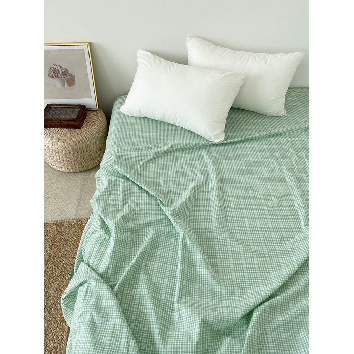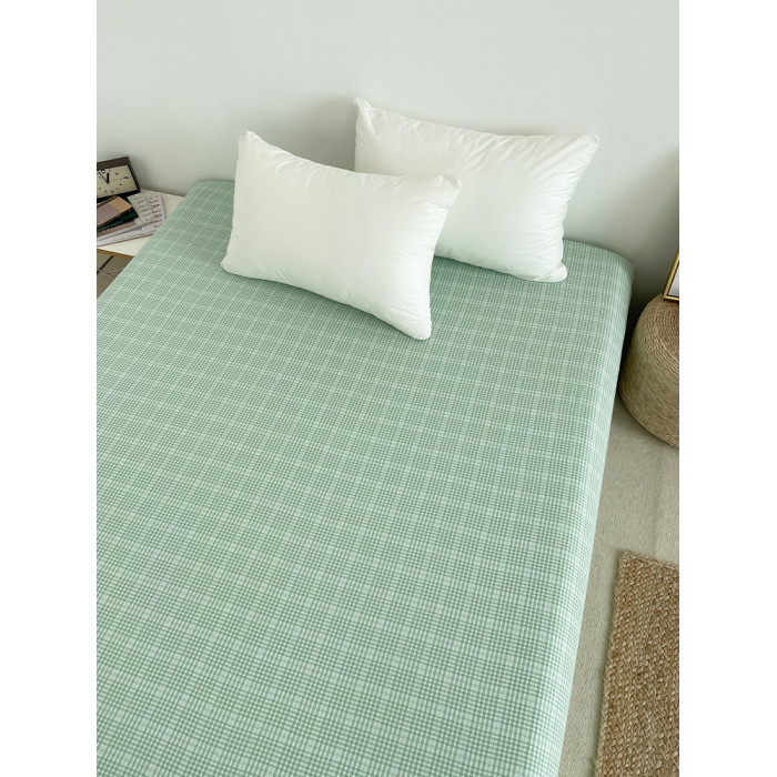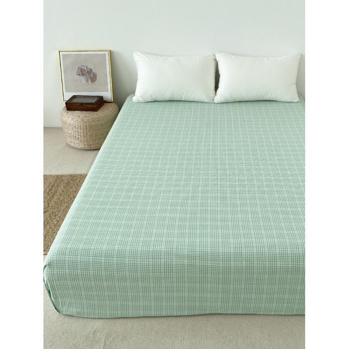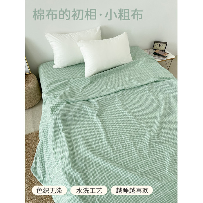 初風四月 簡約格子全棉小粗布床單床笠低飽和治瘉綠水洗棉學生床