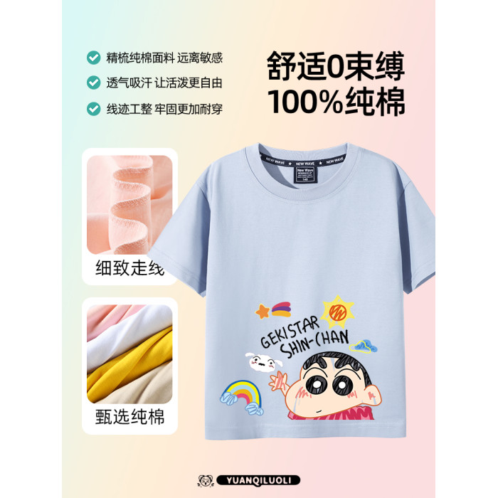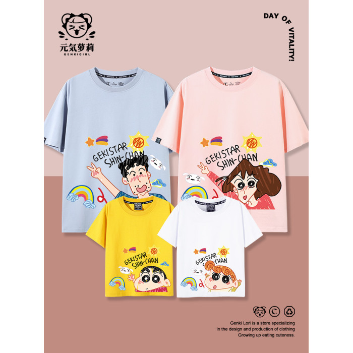蠟筆小新親子裝一家三口四口短袖t恤2025新款高級純棉寬松母子裝