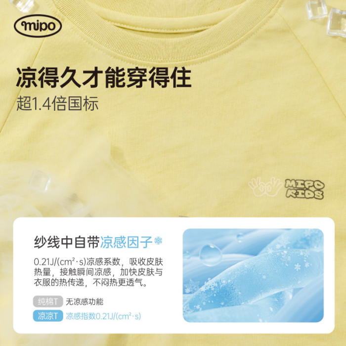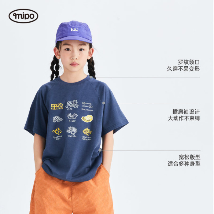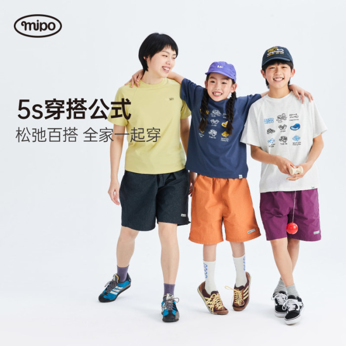 mipo夏季兒童親子短袖T恤涼感印花一家三口裝男女童休閒寬松上衣