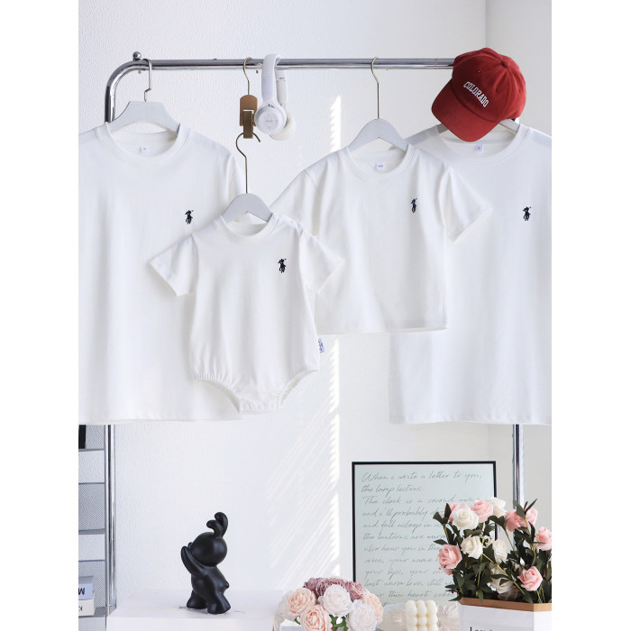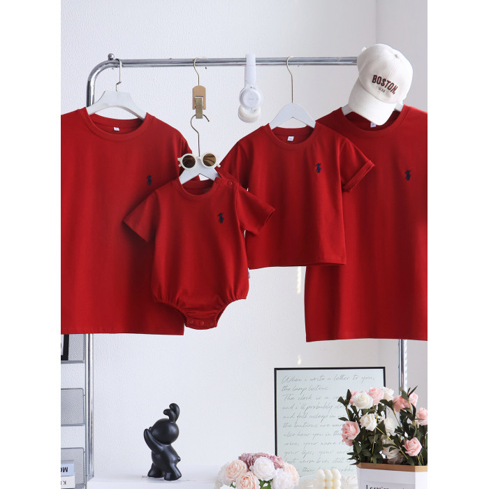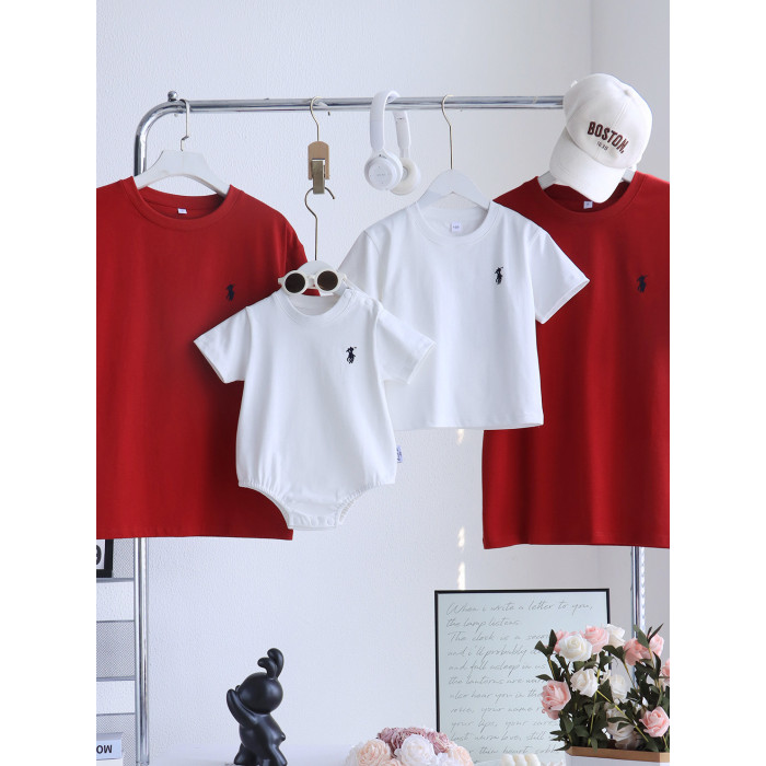 極簡刺綉親子裝一家三口四口裝小月齡嬰兒滿月百天周嵗拍照全家裝