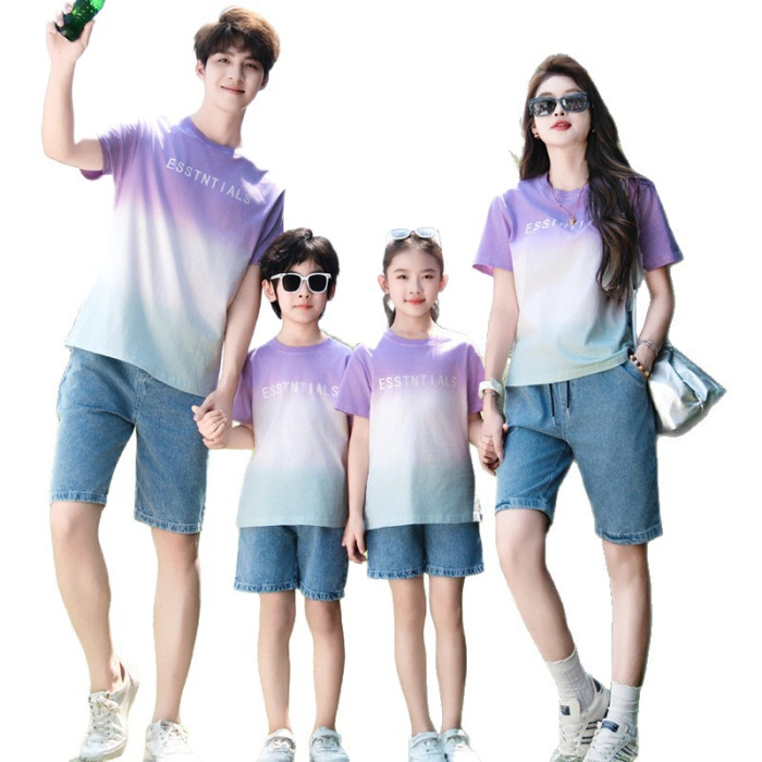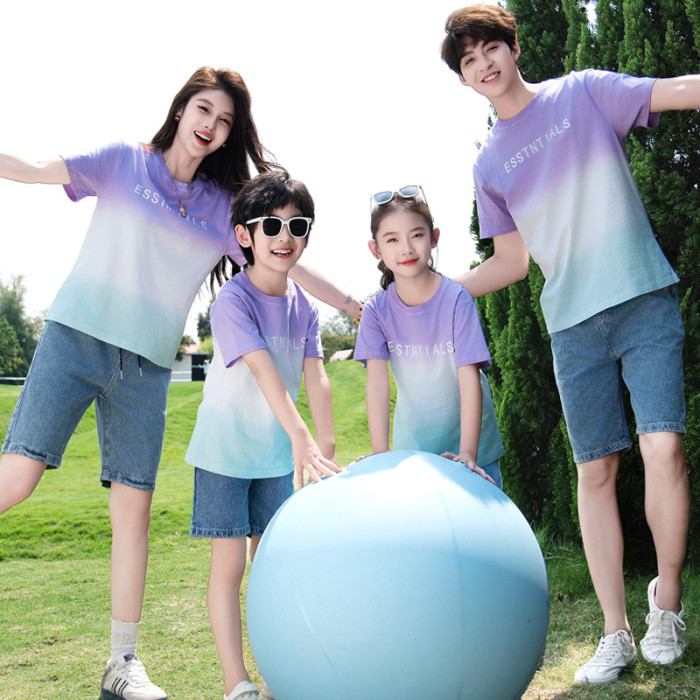 高級不一樣親子裝夏裝韓版短袖t恤一家三口四口家庭裝多巴胺夏季