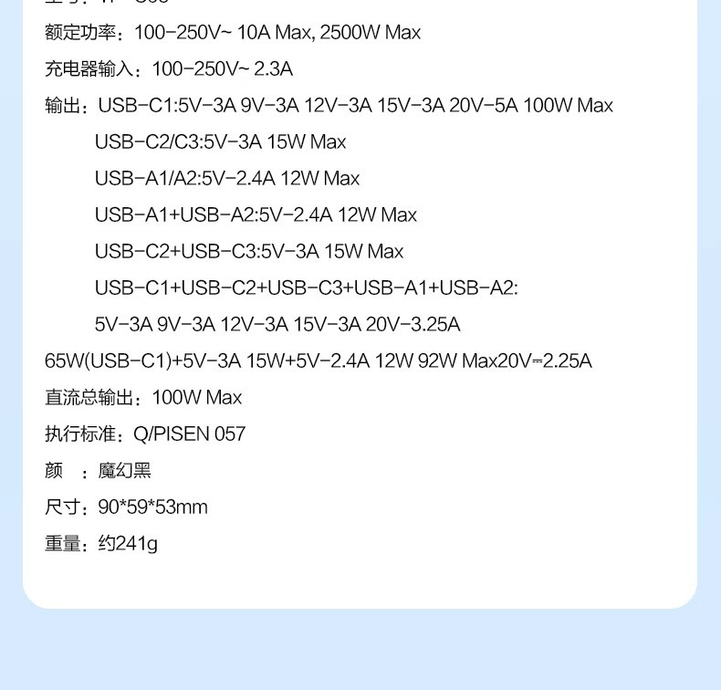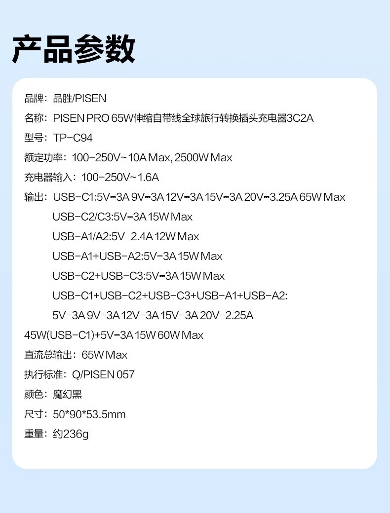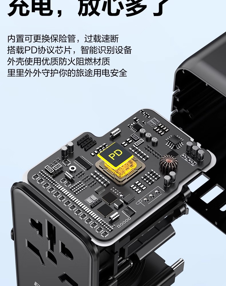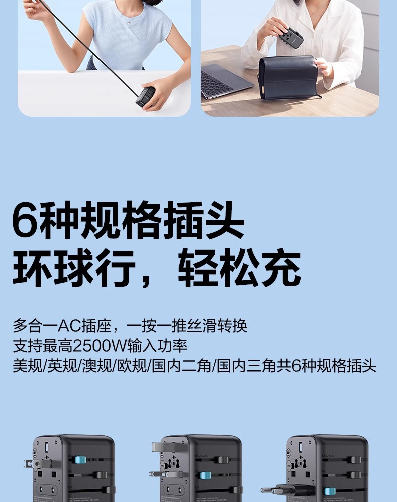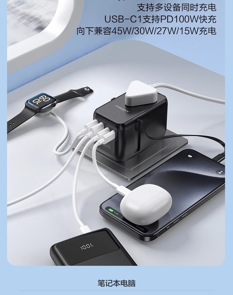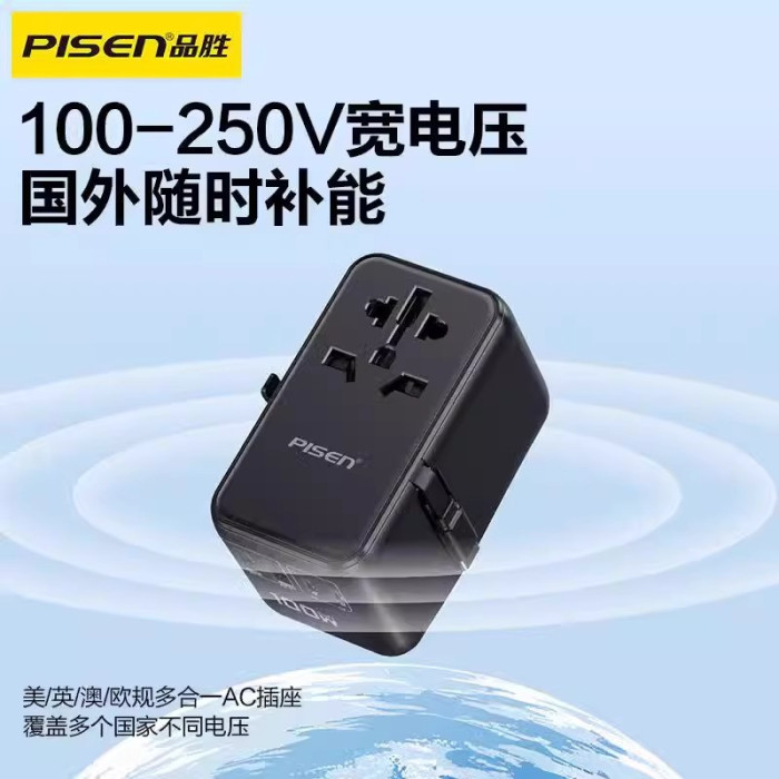 品勝快充轉換插頭100W多功能快充轉換器旅行全球通轉換插座一轉六