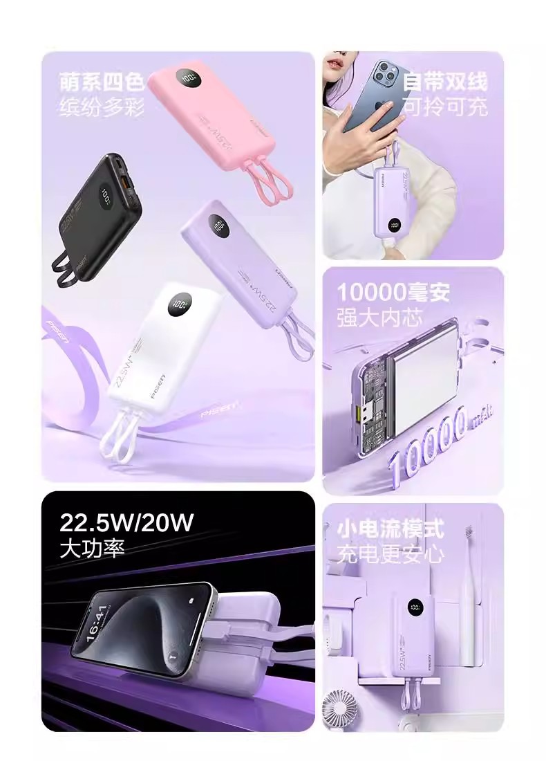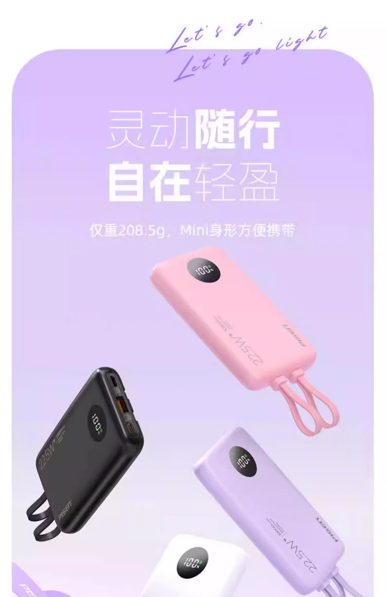 電源容量 | 易充雙自帶線22.5W快充《粉色》 |