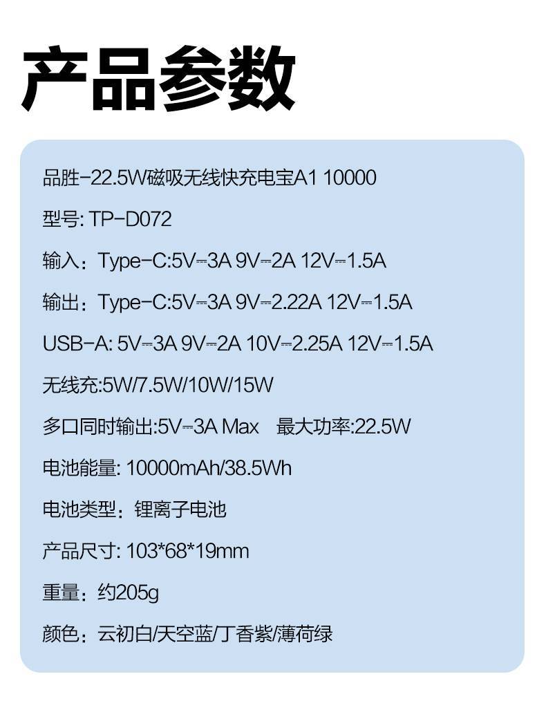顔色 | 【雲初白】22.5W磁吸無線快充電寶A1 |