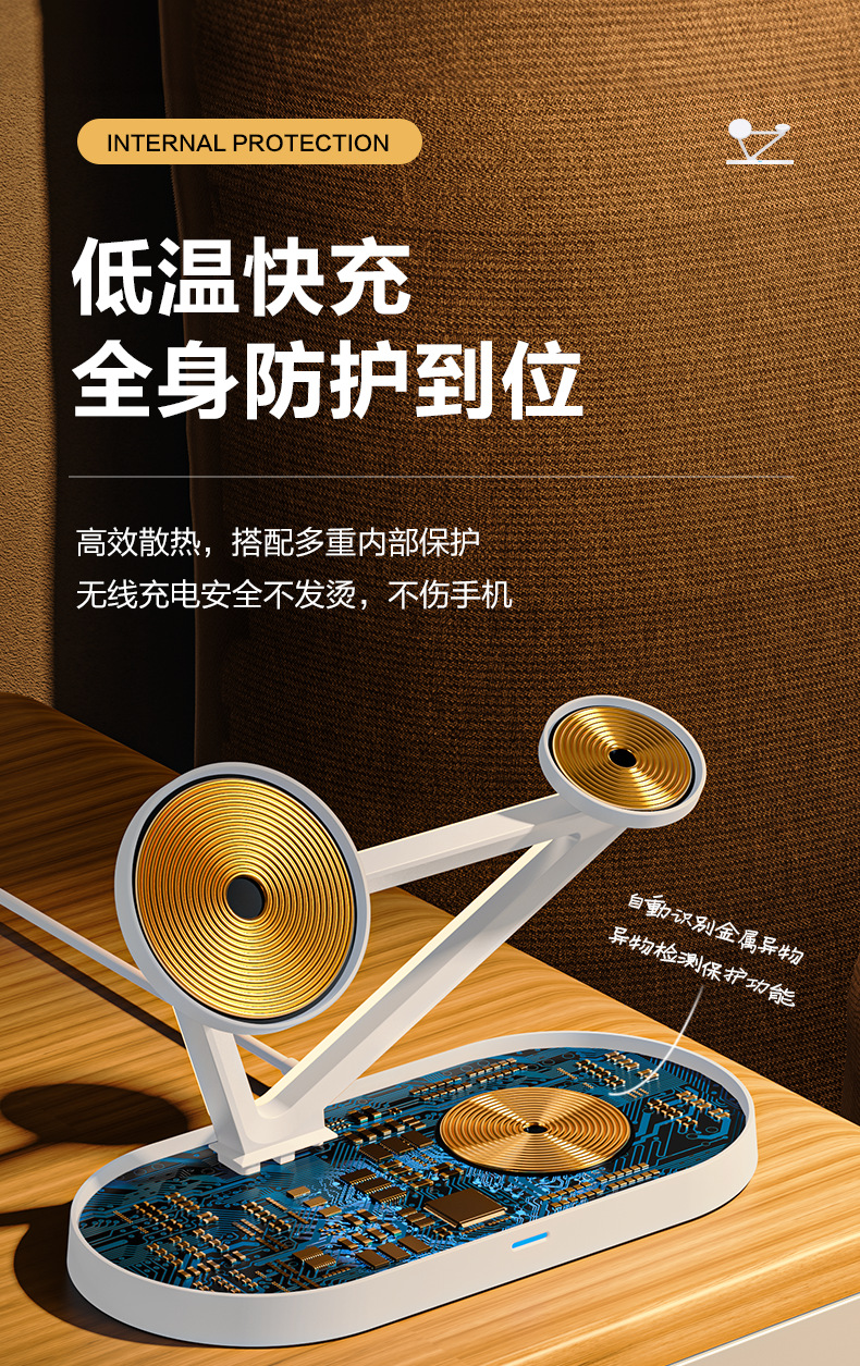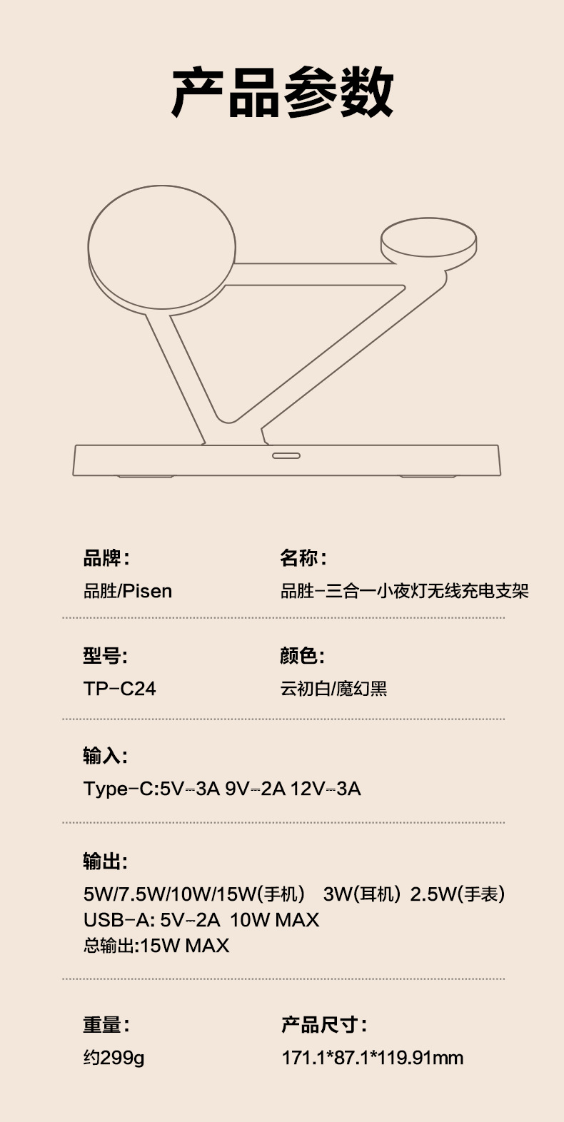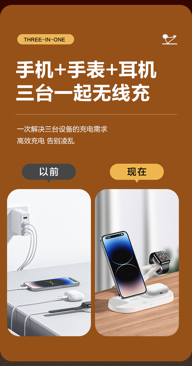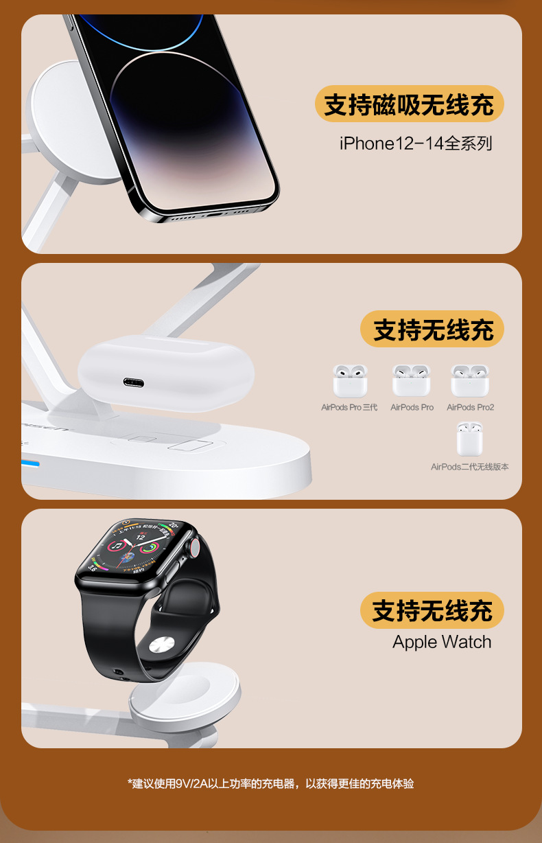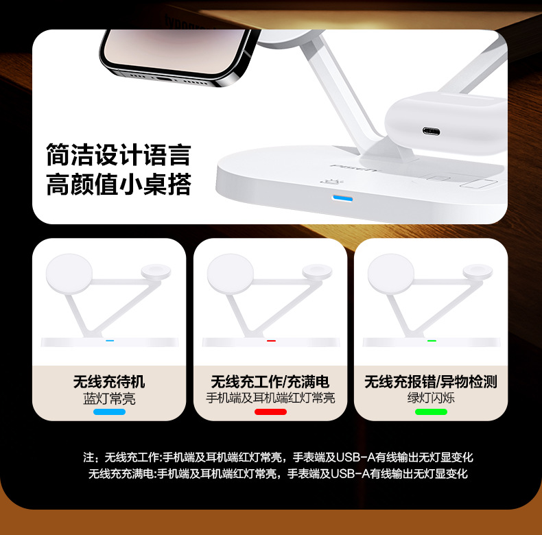 品勝三合一無線充電器適用蘋果15快充Magsafe磁吸iPhone14手機充