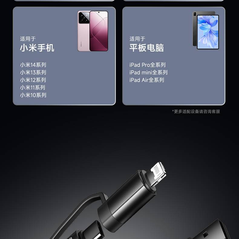 品勝PD60W快充四合一手機數據線筆電充電線適用華爲三星蘋果16p