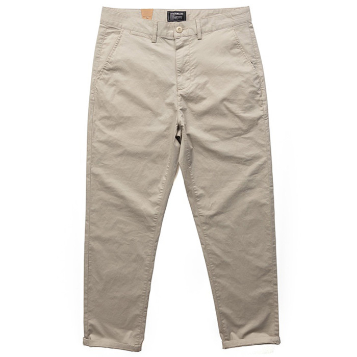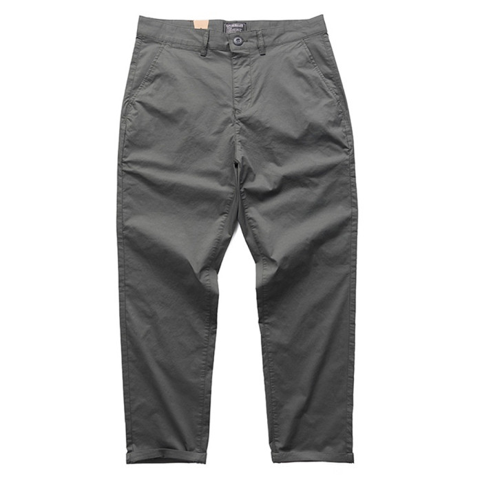春秋簡約美式復古透氣商務休閒軍綠寶藍寬松工裝褲子微彈直角褲