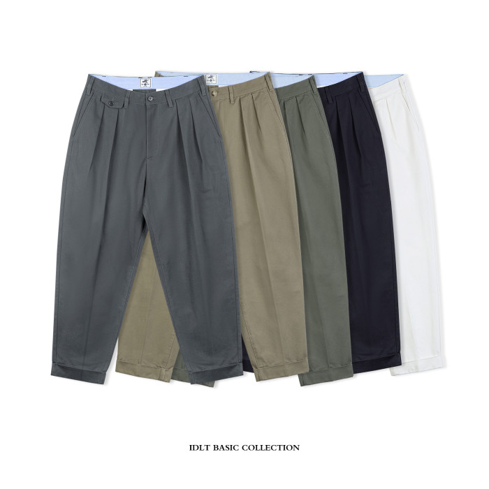 IDLT 錐形休閒褲 高品質雙褶濶腿褲寬松男卡其褲日本簡約cityboy