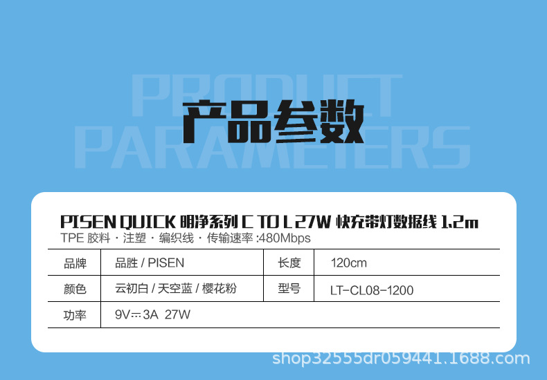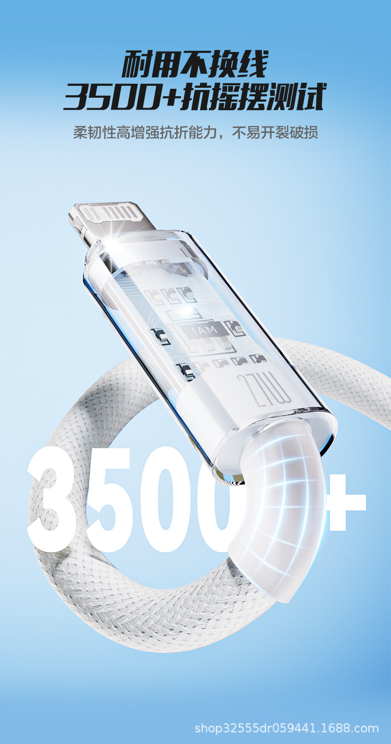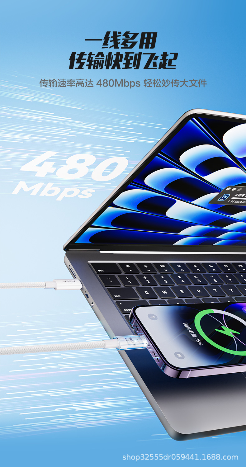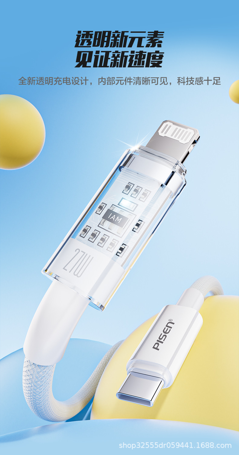 品勝數據線PD27W快充編織帶燈適用蘋果iPhone8/11pro/12/13promax