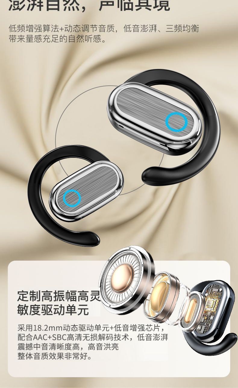 新款無線藍牙耳機掛耳開放式數顯降噪佩戴舒適長續航通用