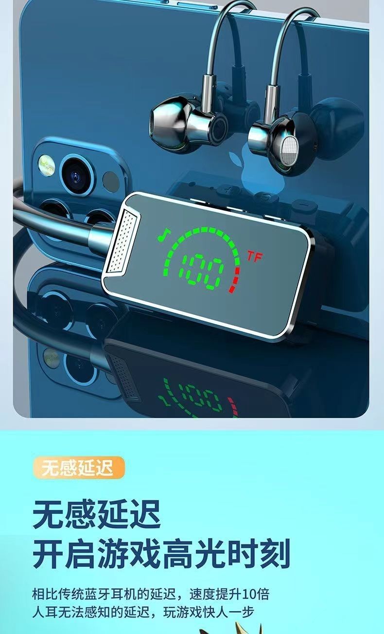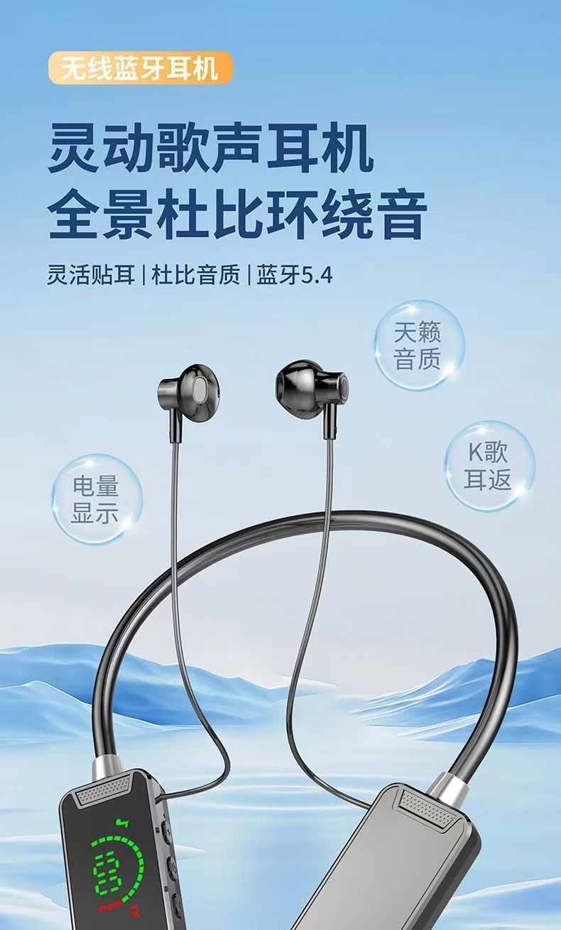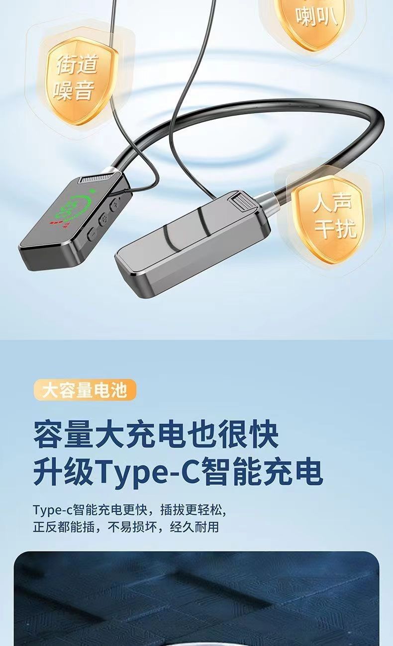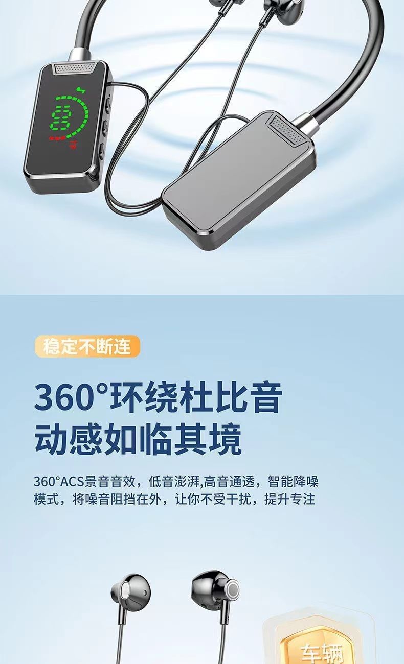 藍牙耳機適用於蘋果華爲小米掛脖數顯運動降噪頸掛超長待機