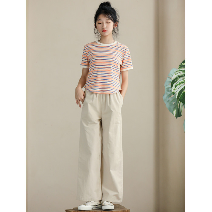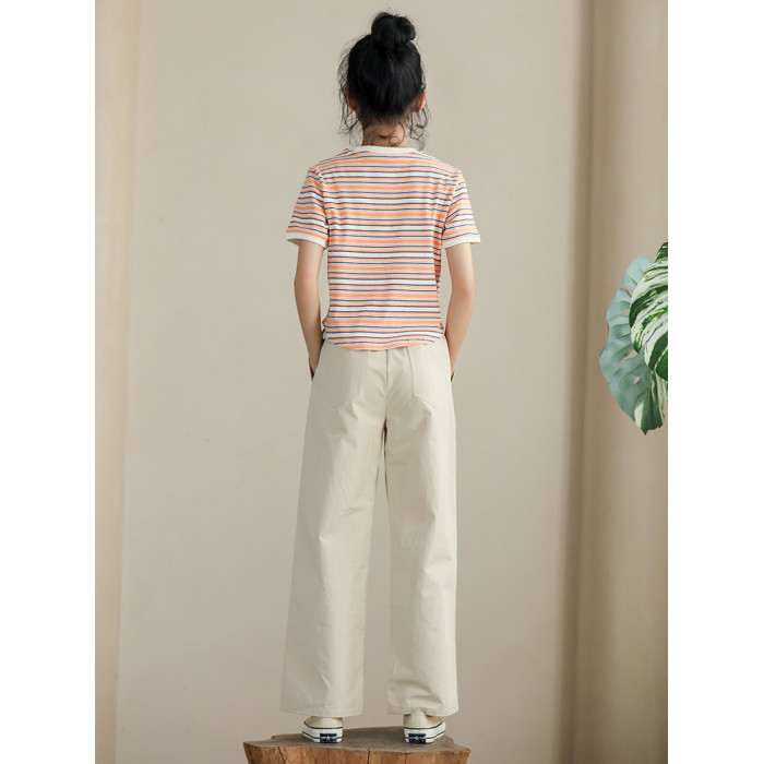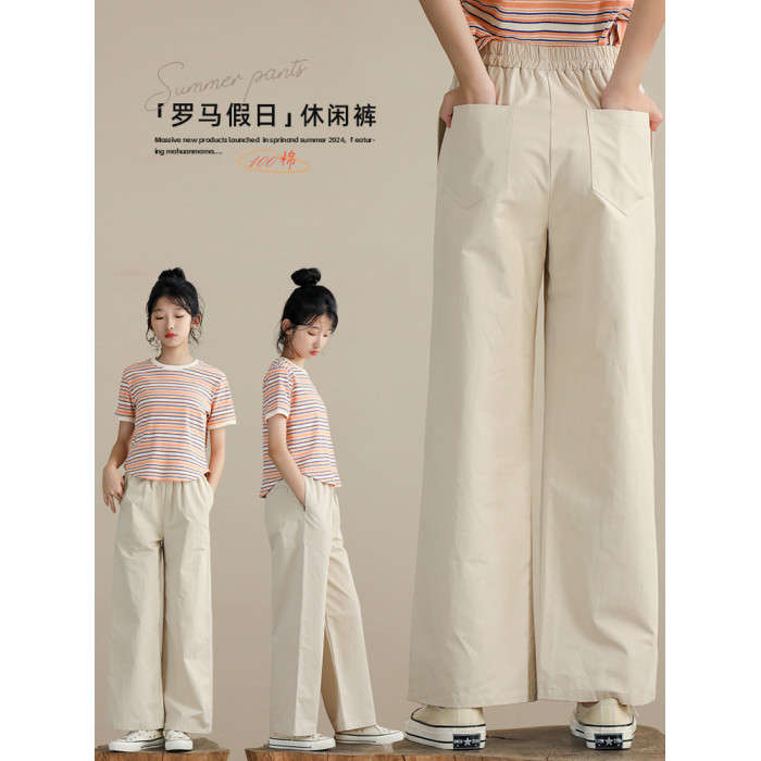 童裝2025夏裝新款大女童純棉寬松休閒褲薄款直筒褲長褲學生濶腿褲