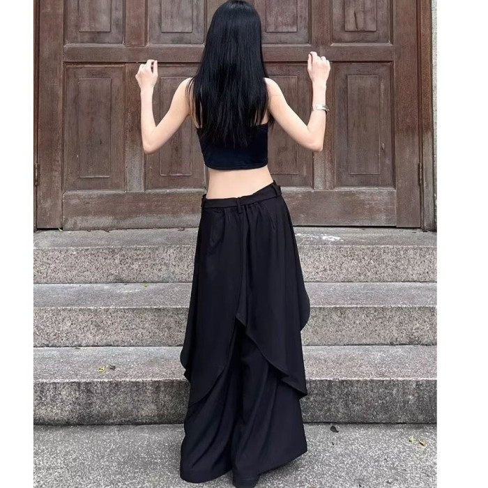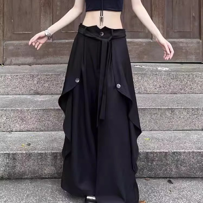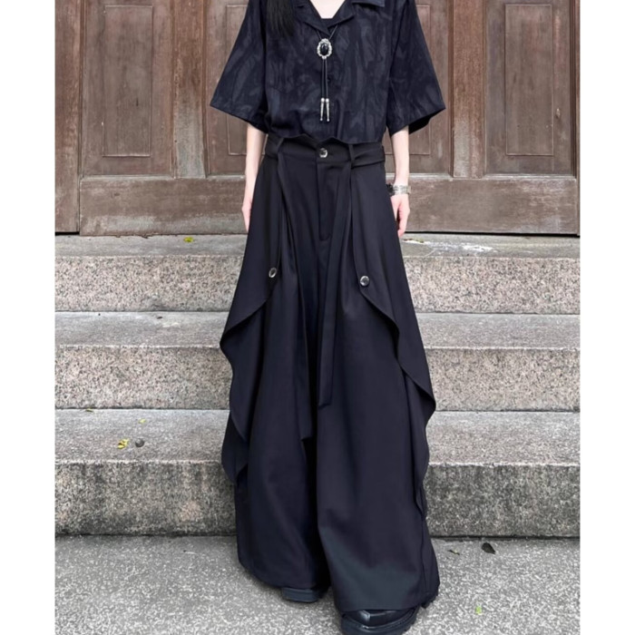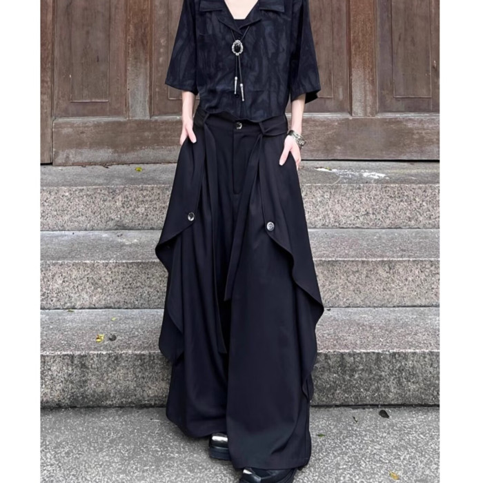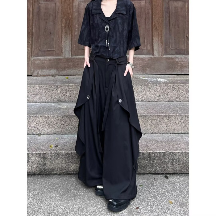 山本耀司風格多層次暗黑風濶腿褲裙男女設計感中式小衆高腰休閒褲