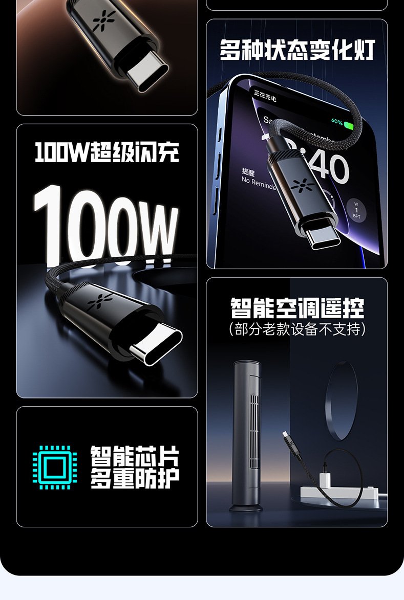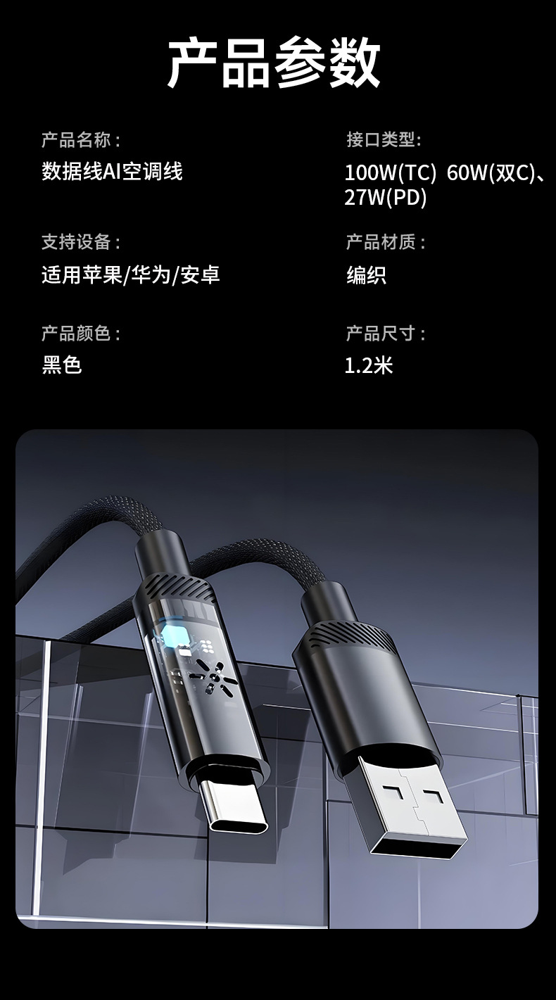 型號 | A-C接口【100W快充】黑色1.2米 |