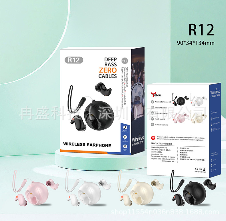 入耳小椰球智能藍牙耳機R12超長續航掛耳配掛繩TWS大電量HIFI音質