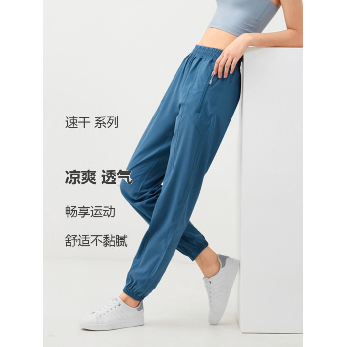 女夏薄款透氣速乾跑步健身褲高腰蜜桃翹臀寬松休閒束腳瑜伽運動褲