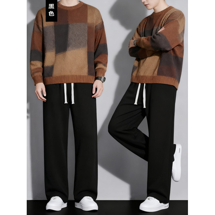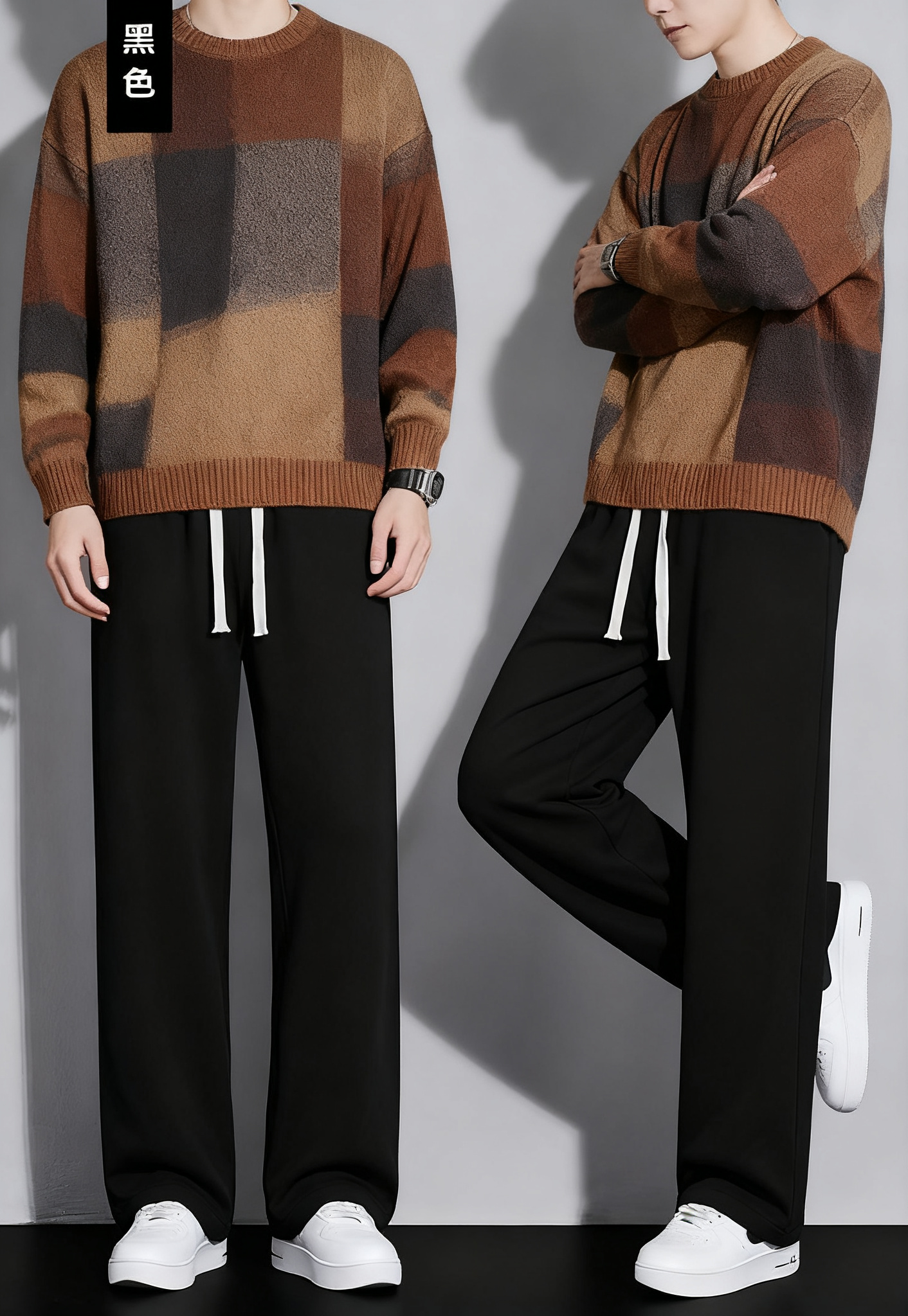 春秋冬季運動長褲男款男款衛褲青少年休閒褲子加絨加厚保暖直筒褲