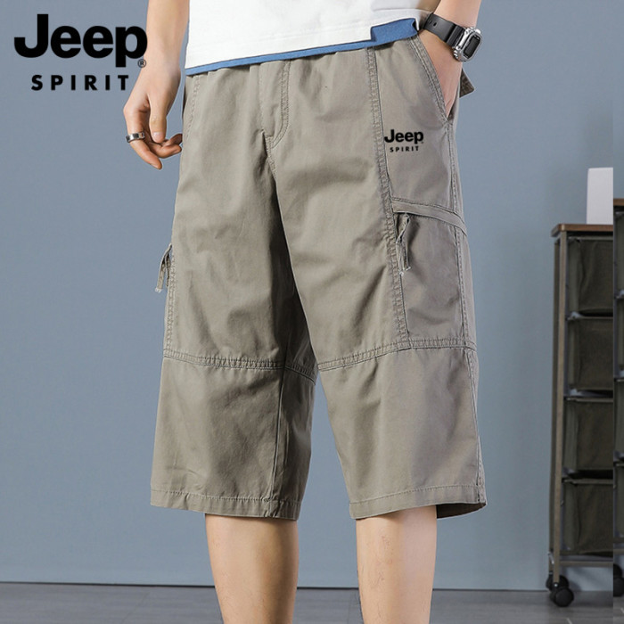 Jeep吉普七分褲男士2025夏季新款休閒短褲寬松濶腿褲純棉工裝褲子