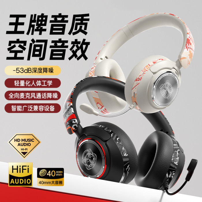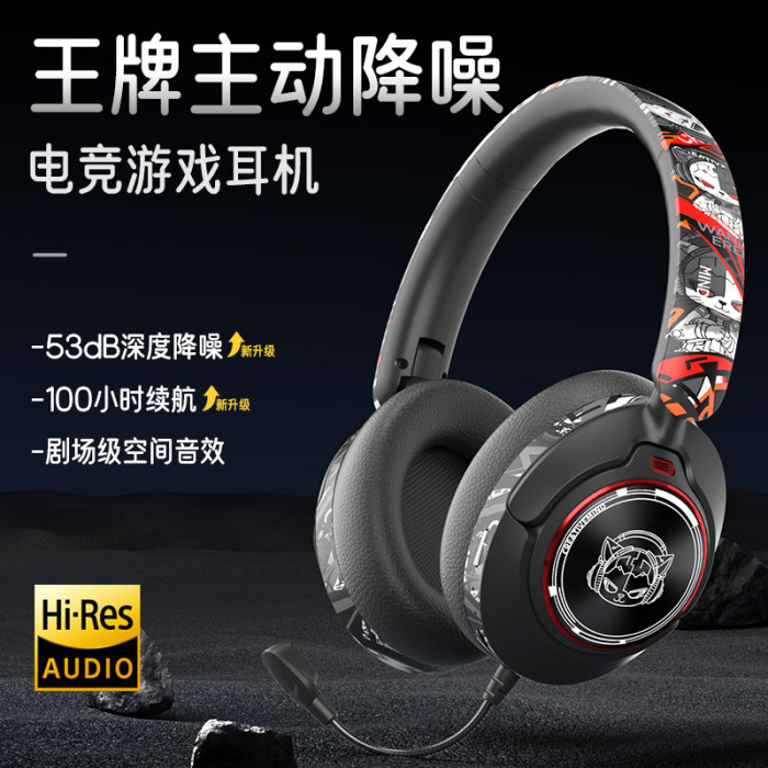 新款國潮頭戴式藍牙耳機無線帶麥主動降噪長續航塗鴉圖案