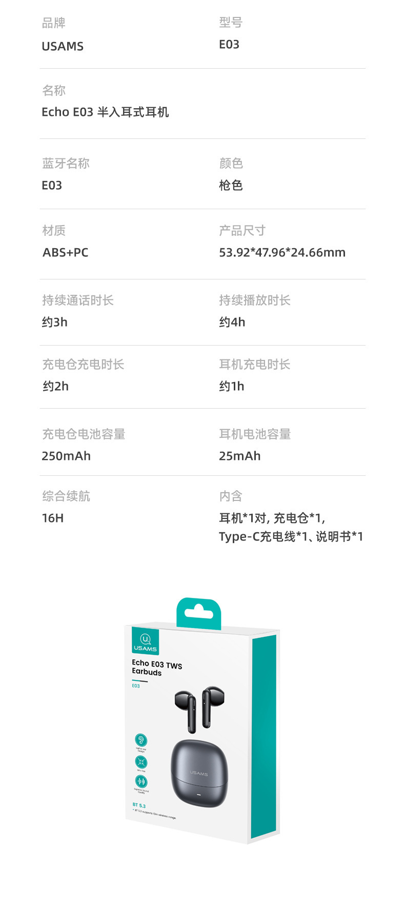 USAMS爆款tws迷你藍牙耳機立體聲音樂無線耳機禮盒裝