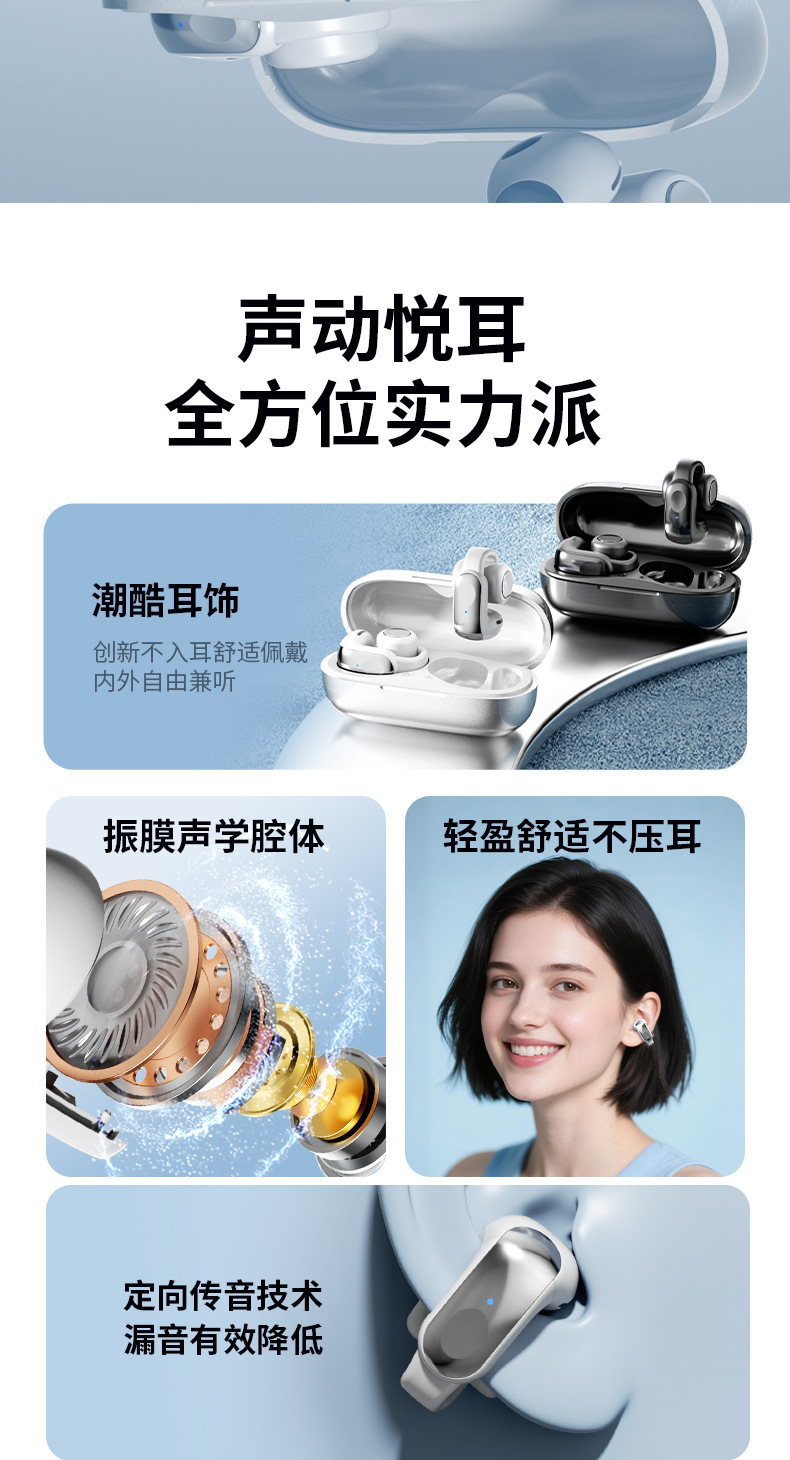 新款無線藍牙耳機KY39耳夾式不入耳運動耳機超長續航大電量