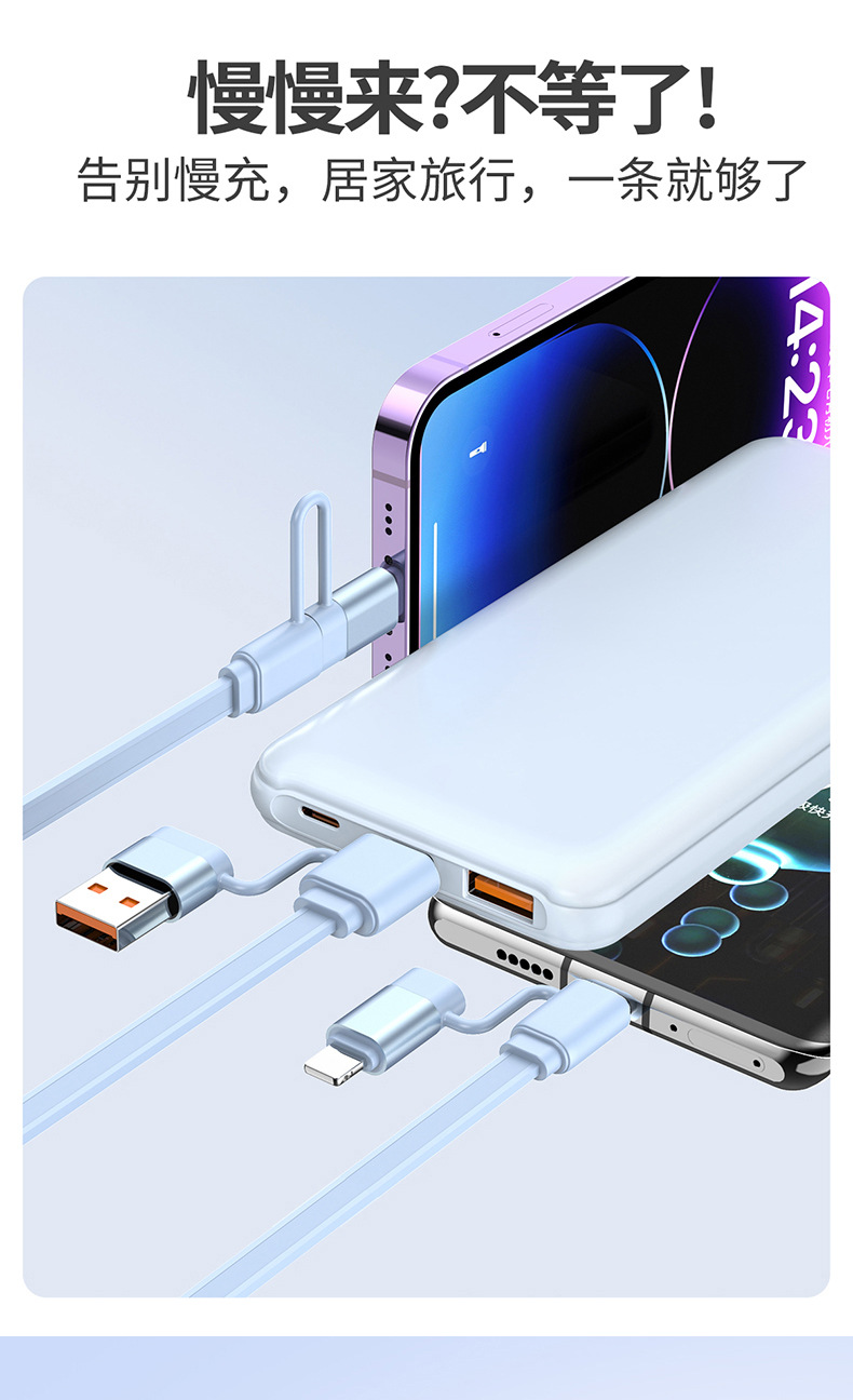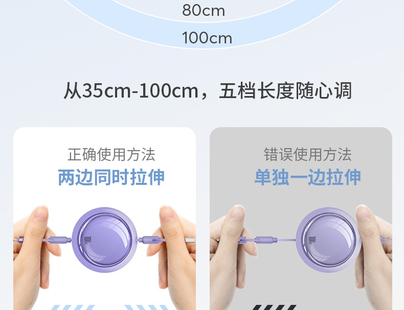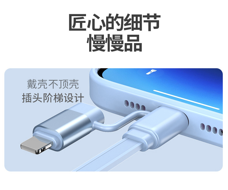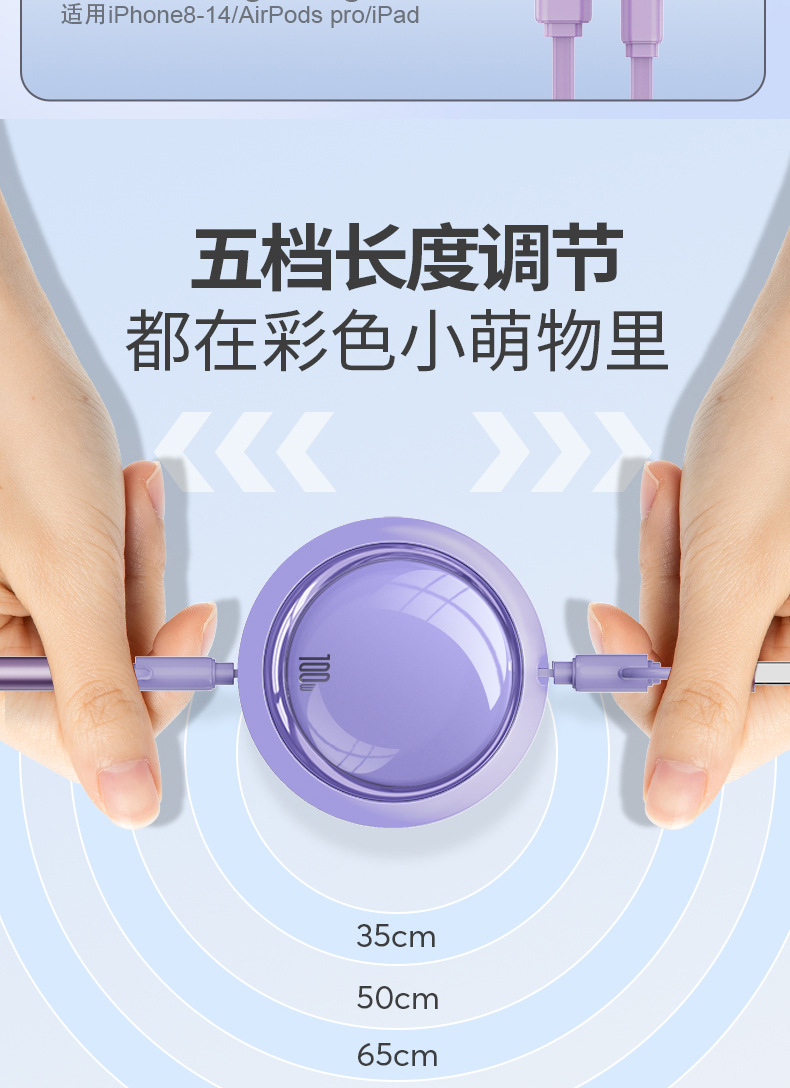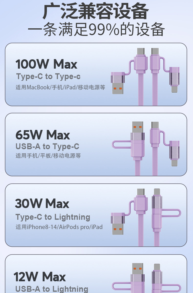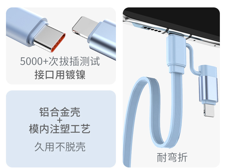 圓鏡四合一伸縮數據線100W快充電源線適用蘋果安卓Type-c華爲車用