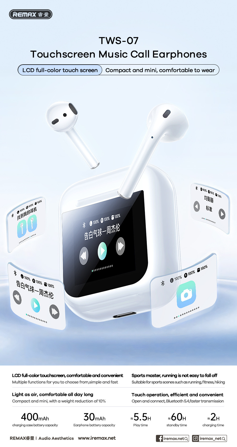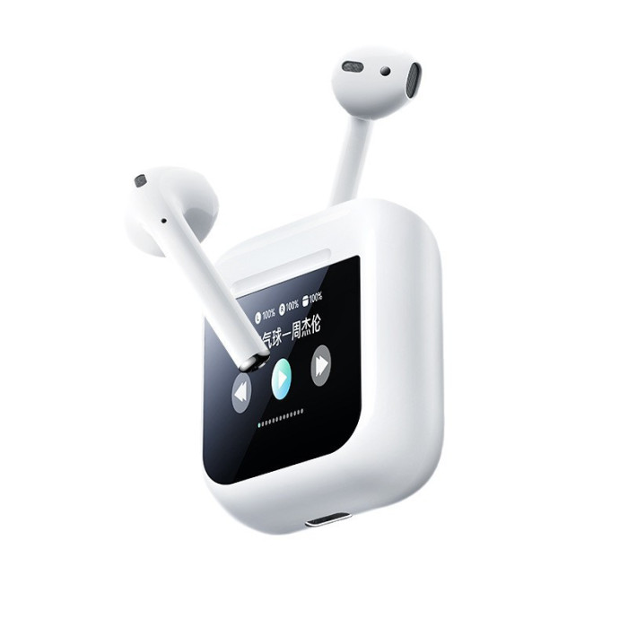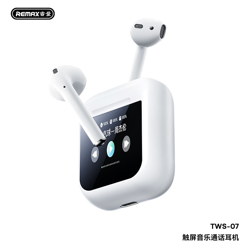 Remax新款半入耳式觸控螢幕藍牙耳機帶顯示屏TWS無線耳機音樂通話耳機