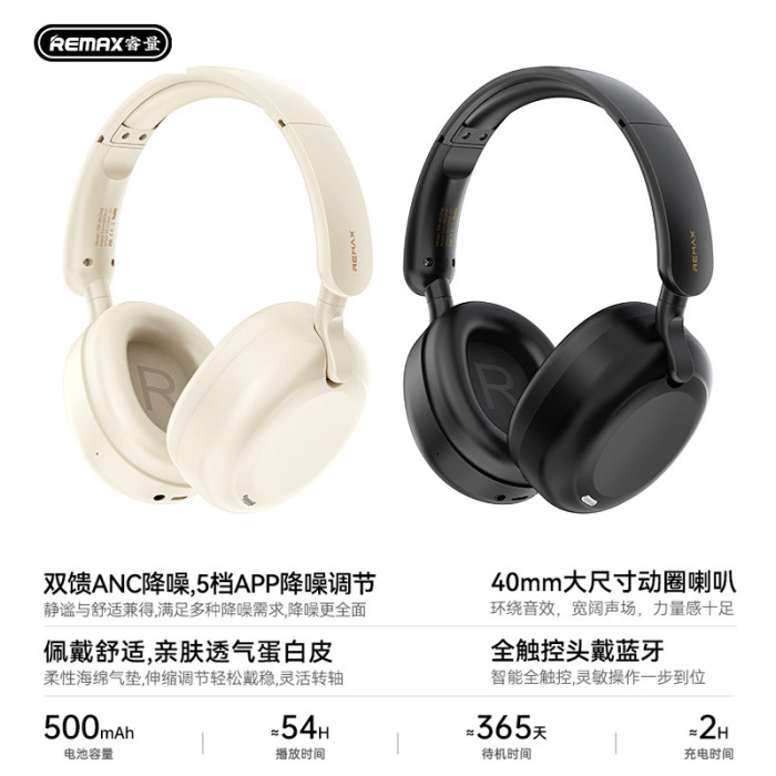 Remax無線頭戴式耳機雙餽ANC降噪音樂通話藍牙耳機長續航藍牙5.4