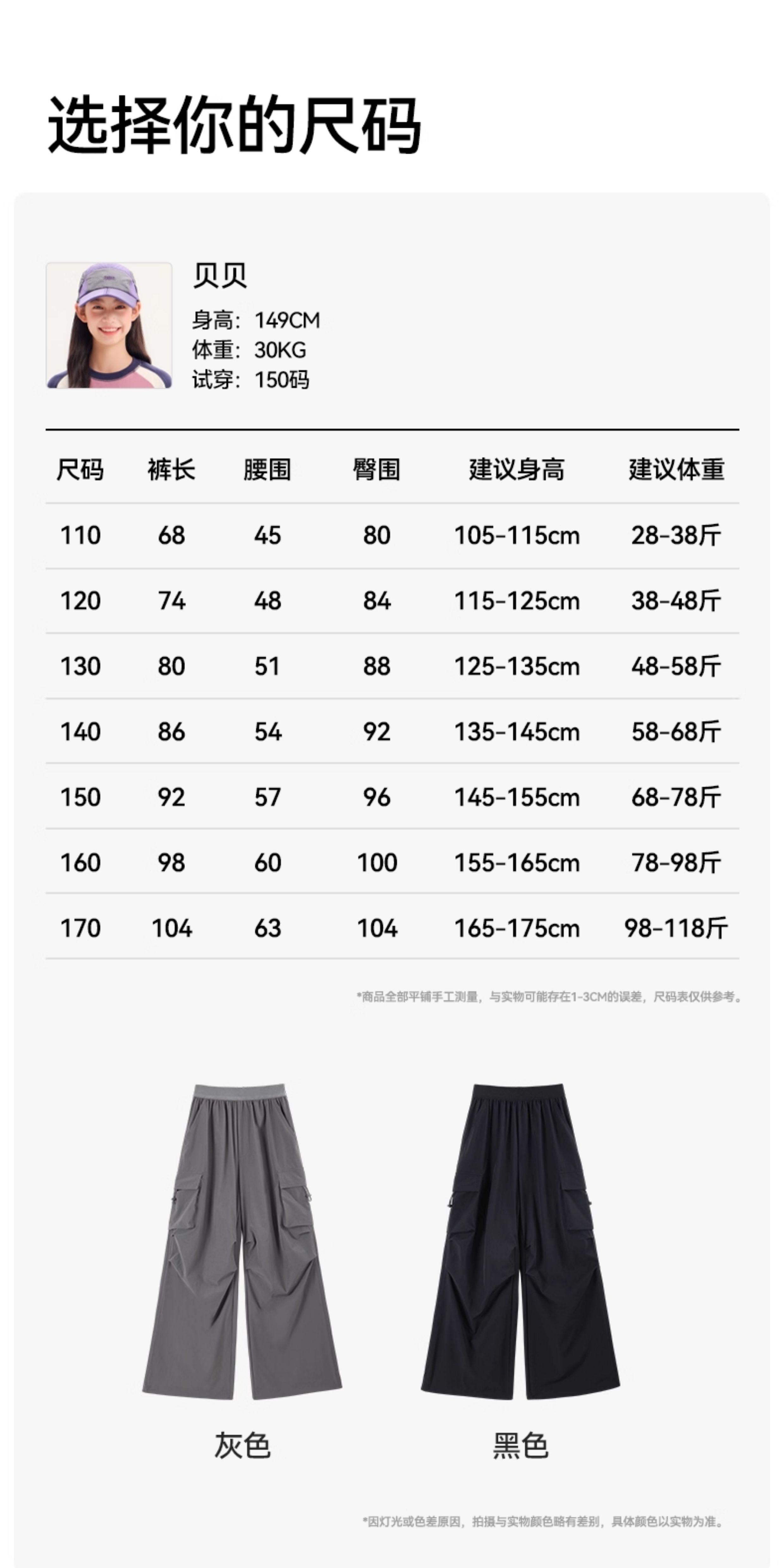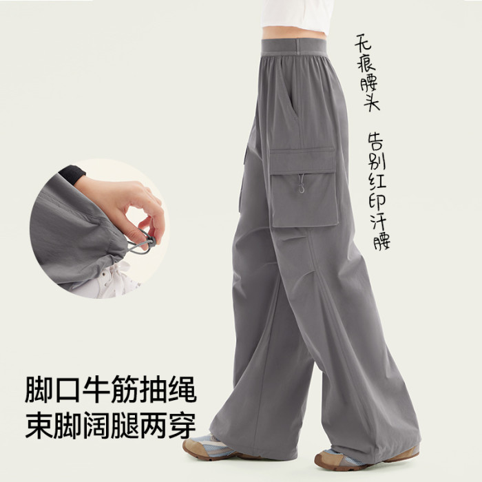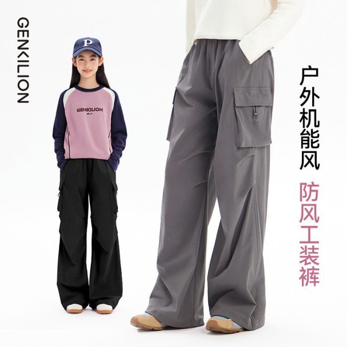 女童褲子兒童濶腿工裝褲2025夏季薄款大童寬松戶外涼感速乾直筒褲