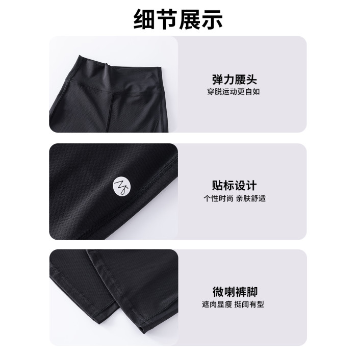 女童喇叭褲兒童夏季薄款速乾瑜珈微喇鯊魚褲子女大童冰絲黑色運動