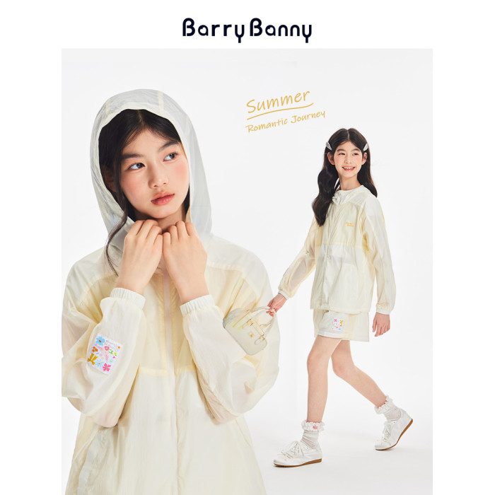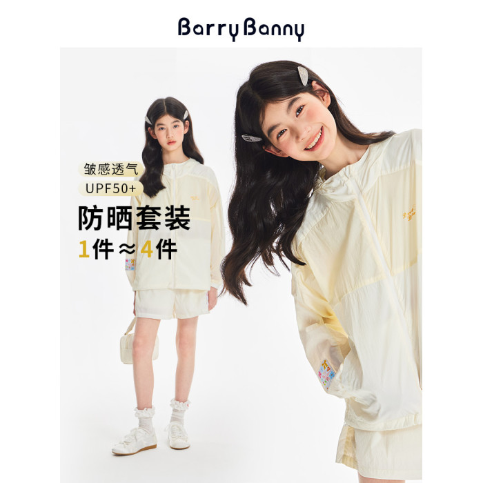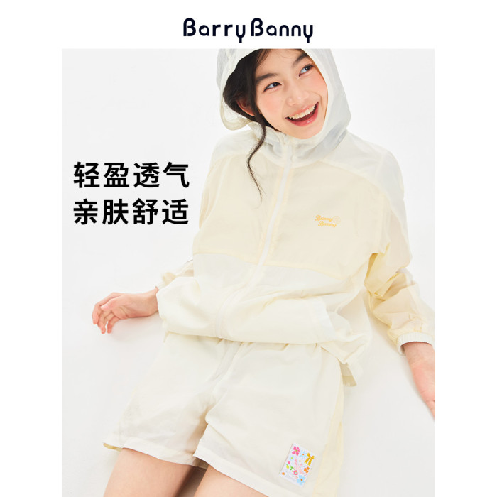 BarryBanny女童夏季輕薄UPF50防曬衣新款兒童戶外淺黃透氣上衣